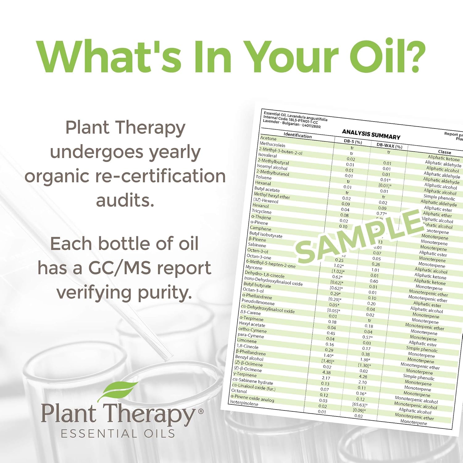 - Every bottle of oil from Plant Therapy goes through multiple rounds of testing including organoleptic testing and multiple rounds of GC-MS testing by several third-party laboratories.
