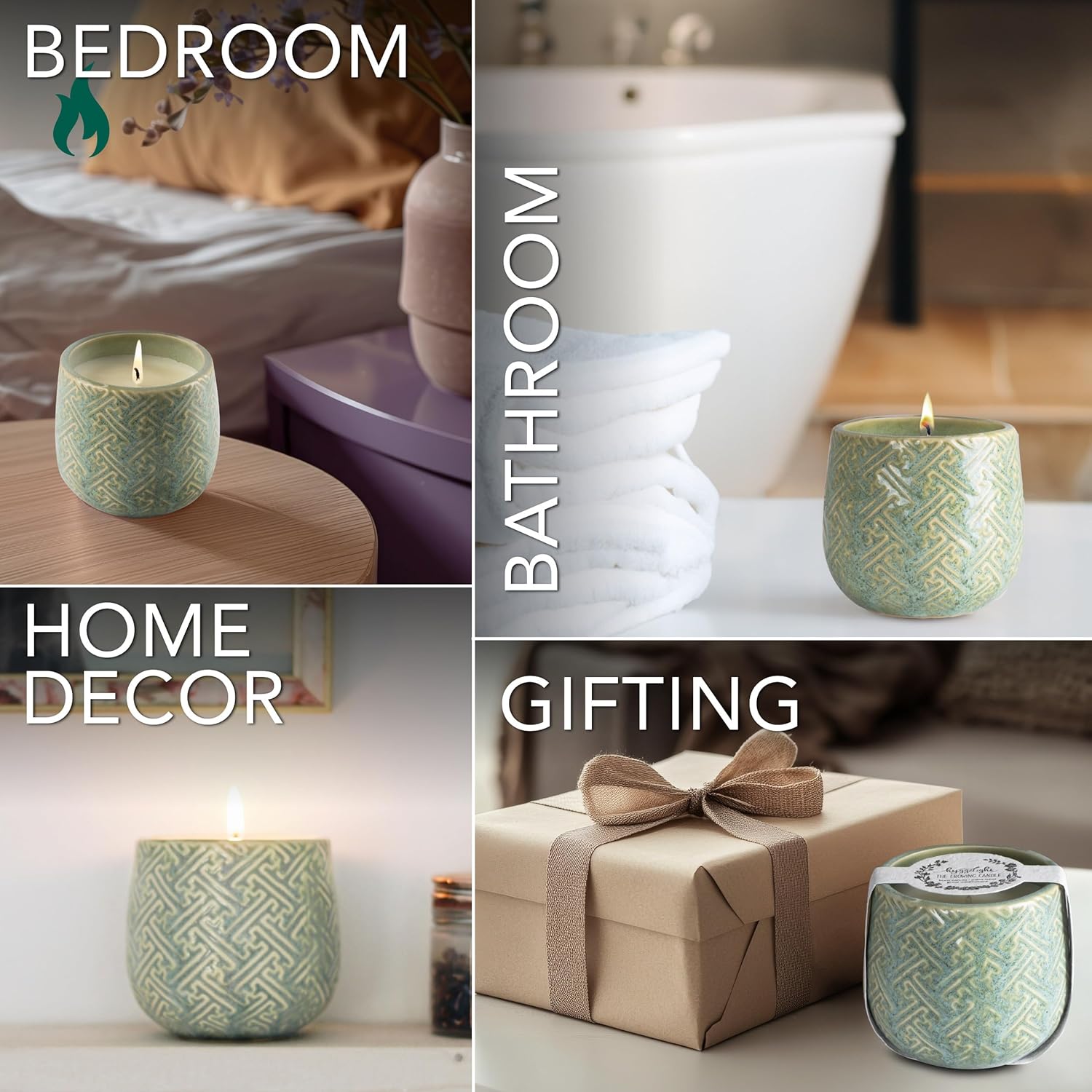- QUALITY CONTAINER: The Ida container, featuring a handmade Green Ceramic design, holds 10oz (295ml) of wax; once the natural wax of the scented candle burns out, reuse the pot to plant wildflowers or enhance your home with a personal touch