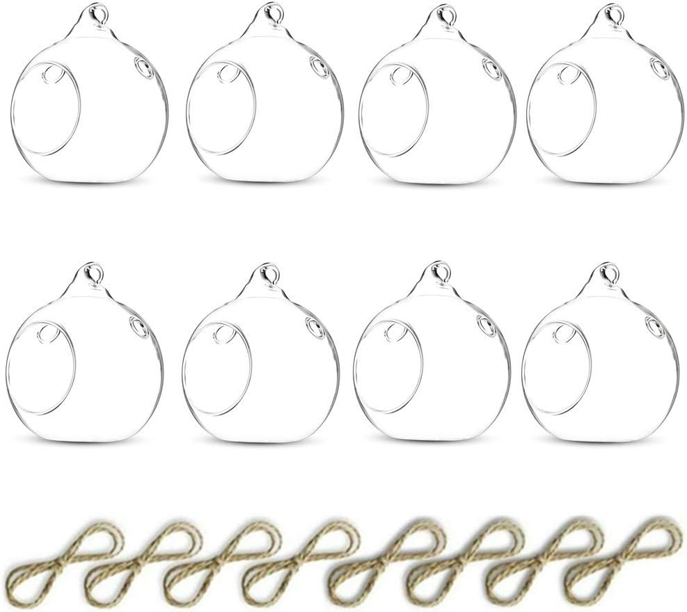 - FEATURE: Includes 2 side holes on each glass plant hanger for easy watering and a top hook. These glass decoration tealight holders come with a small hook at the top so you can hang it from anywhere in your home. The bottom of the globe is flat, allowing you to place these as tabletop plants or any other flat surface.