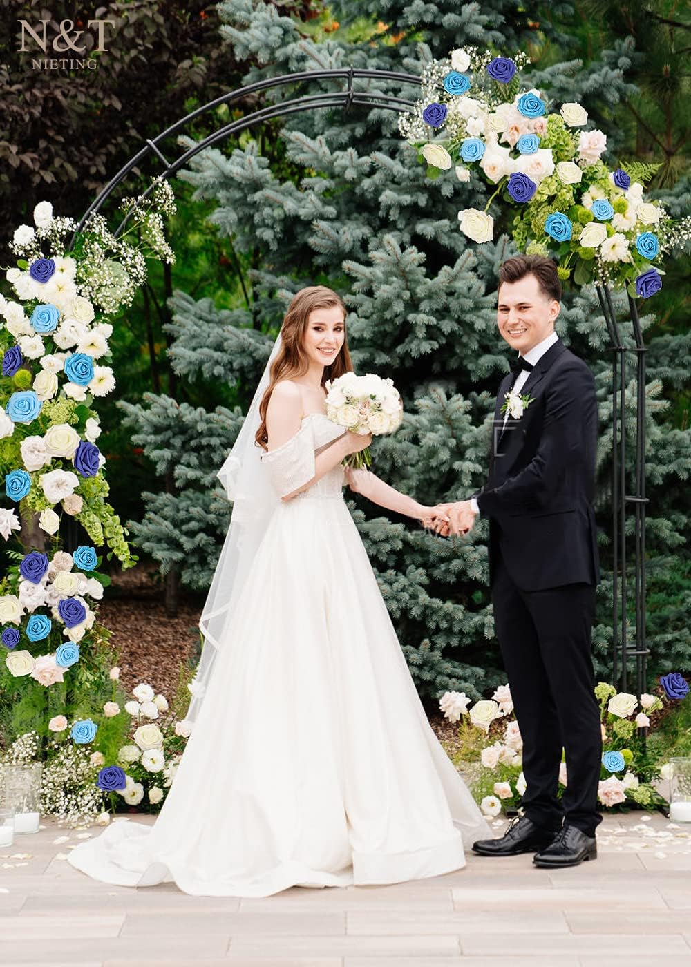 N&T NIETING Blue Roses Artificial Flowers, 25pcs Fake Flowers Rose Perfect for DIY Wedding Bridesmaid Bridal Bouquets Centerpieces Home Flower Arrangement Decoration, Series Blue