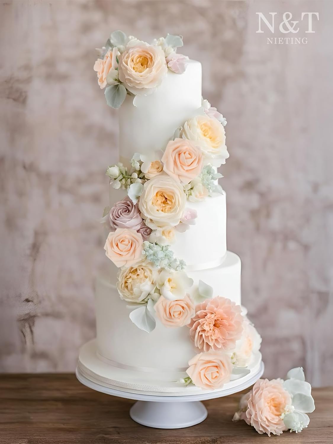 N&T NIETING Artificial Flowers, 25Pcs Fake Flowers Roses Perfect for DIY Wedding Bouquets Centerpieces Bridal Shower Party Home Flower Arrangement Decorations, Blush