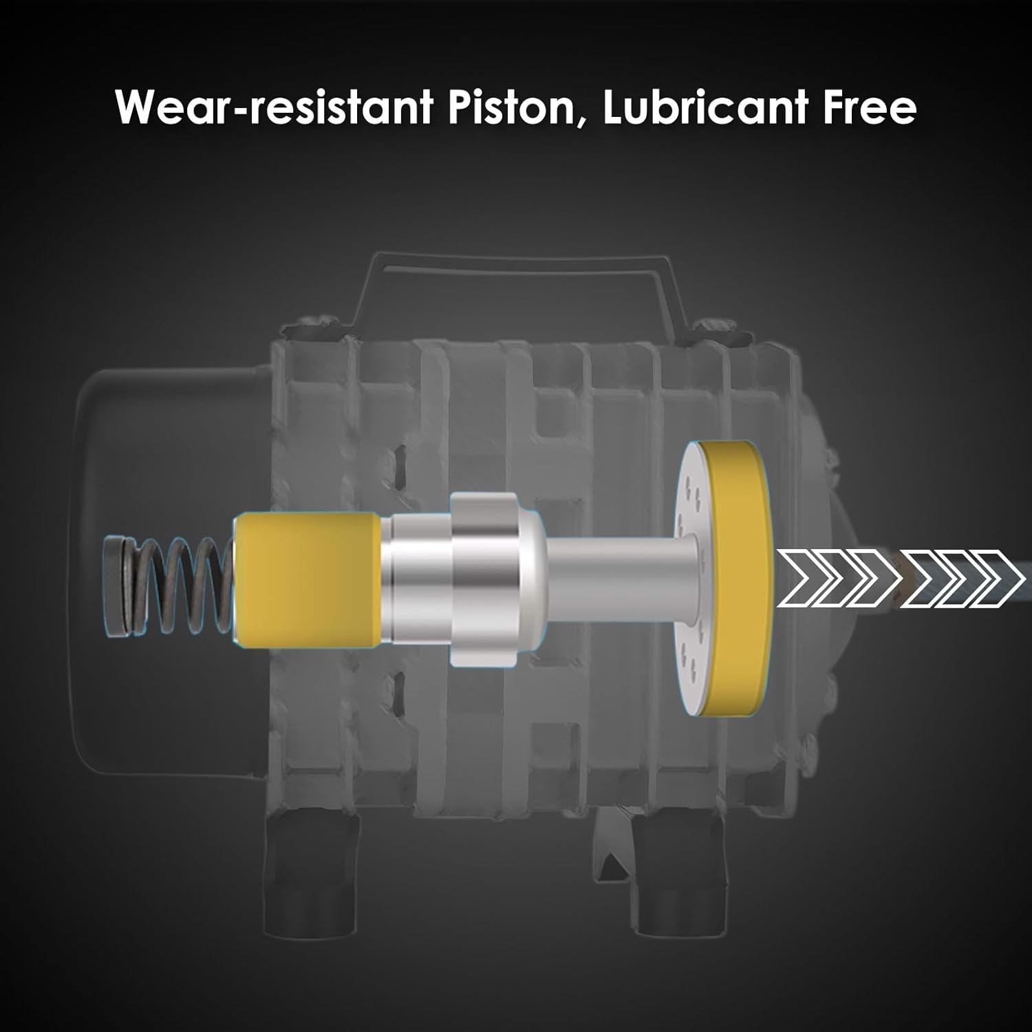 - EFFICIENT HEAT DISSIPATION – This commercial air pump comes with aluminum alloy housing with enlarged surface for efficient heat dissipation. (Reminder – pump should be placed at a well-ventilated location. A cooling fan will help increase the life of the pump significantly)