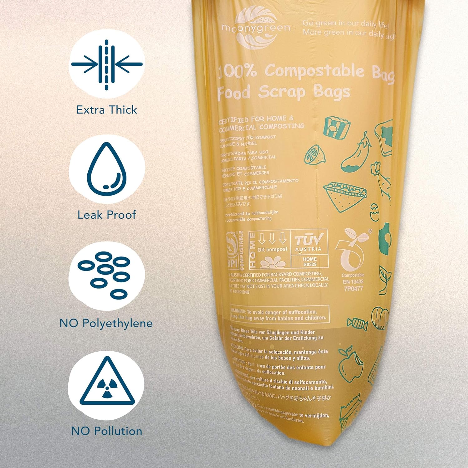 - ā Moonygreen is one-stop solution for you : Moonygreen food scrap bags are Super-Thick, strong enough for household. The special design offer you ease in tearing off the bags. Non-Toxic feature makes you feel more secure when you use our bags. With Moonygreen, you can get a High-quality experience while protecting our Earth!