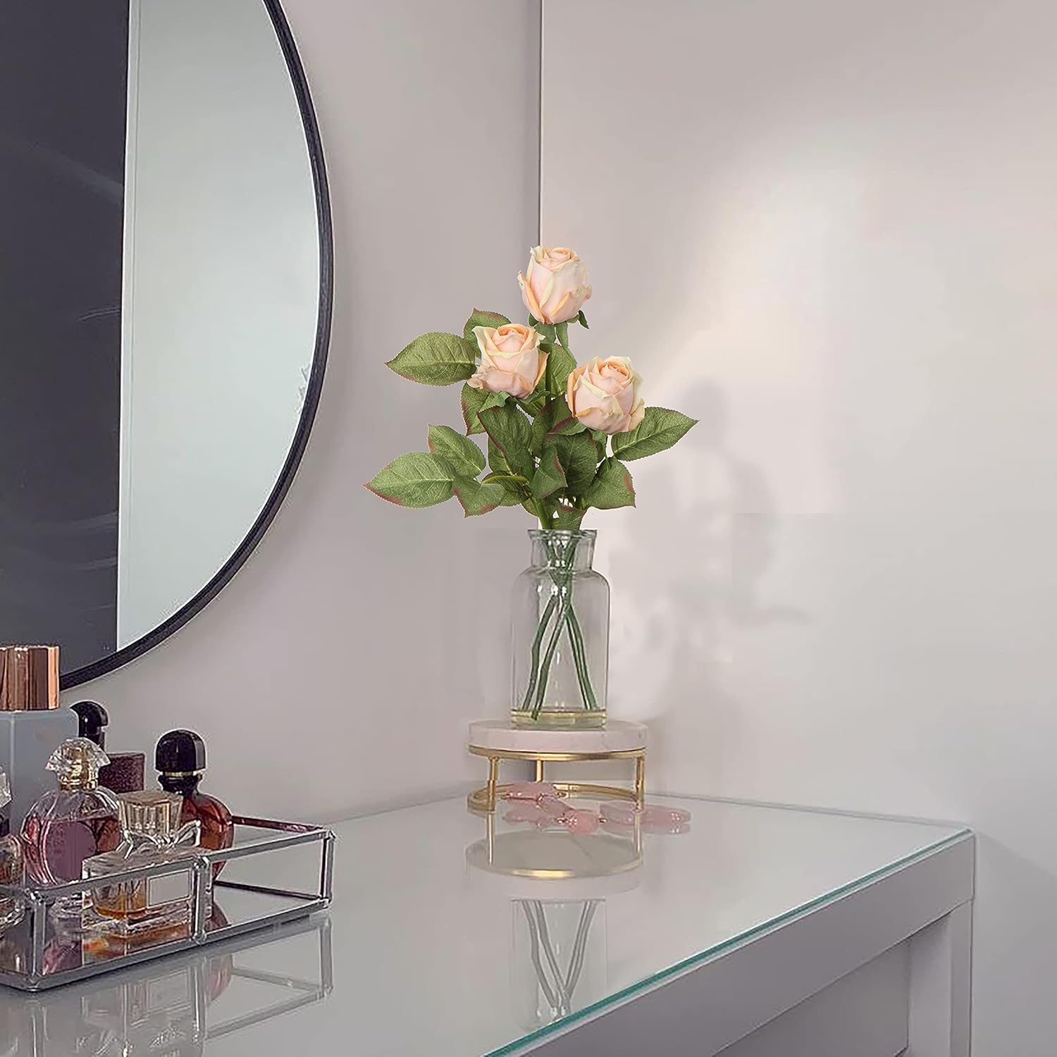 Artificial Realistic Roses Peach Flowers 24" Real Touch Silk Roses Bouquet Long Stems Rose Fake Roses Decor for Home Party Wedding Table Centerpieces Roses Realistic - 5 Pcs