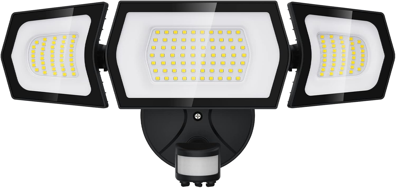 - Flexible Light Head: 3 adjustable light heads allow this outdoor floodlight to reach 240ยฐof lighting angle, which can be installed both on the wall and under the eaves, easily adjusting the lighting and detection angle according to your needs