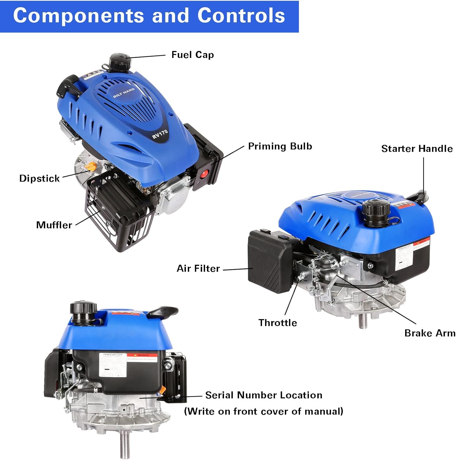 BILT HARD Gas Engine Vertical Shaft, 173cc 4.4 HP 4-Stroke Gas Motor, Replacement Engine for Lawn Mower, EPA & CARB Compliant