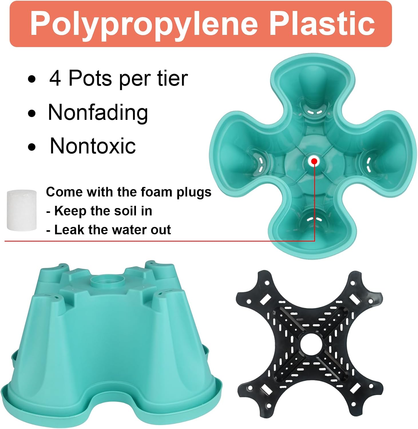 DUNCHATY Stackable Planter, Vertical Garden Planter with Wheels and Tools, Self Watering Strawberry Planter Indoor/Outdoor 6 Tier Herb Planter Pots for Growing Vegetables and Succulents, Teal
