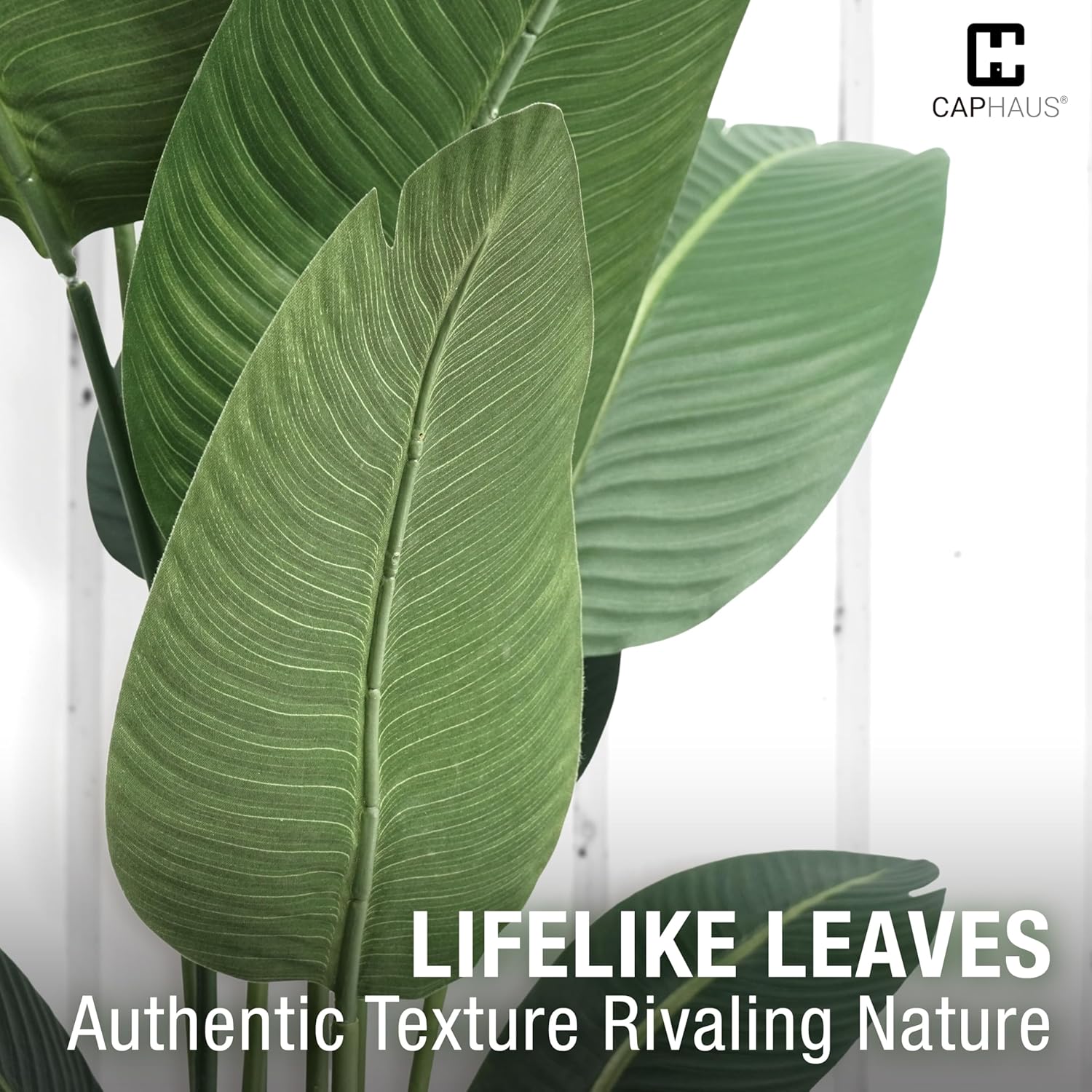 - 🌱 Living with green - Overall Product Dimensions: 10 Lifelike Trunks, Standing 5 Feet, 60 Inch from a planter (included in height) ; Planter Dimensions: H: 5.1 Inch. W: 5.9 Inch. Designed to look like a real bird of paradise tree, with high-quality, realistic plastic leaves that are crafted with great attention to detail to ensure that they look and feel just like real leaves.