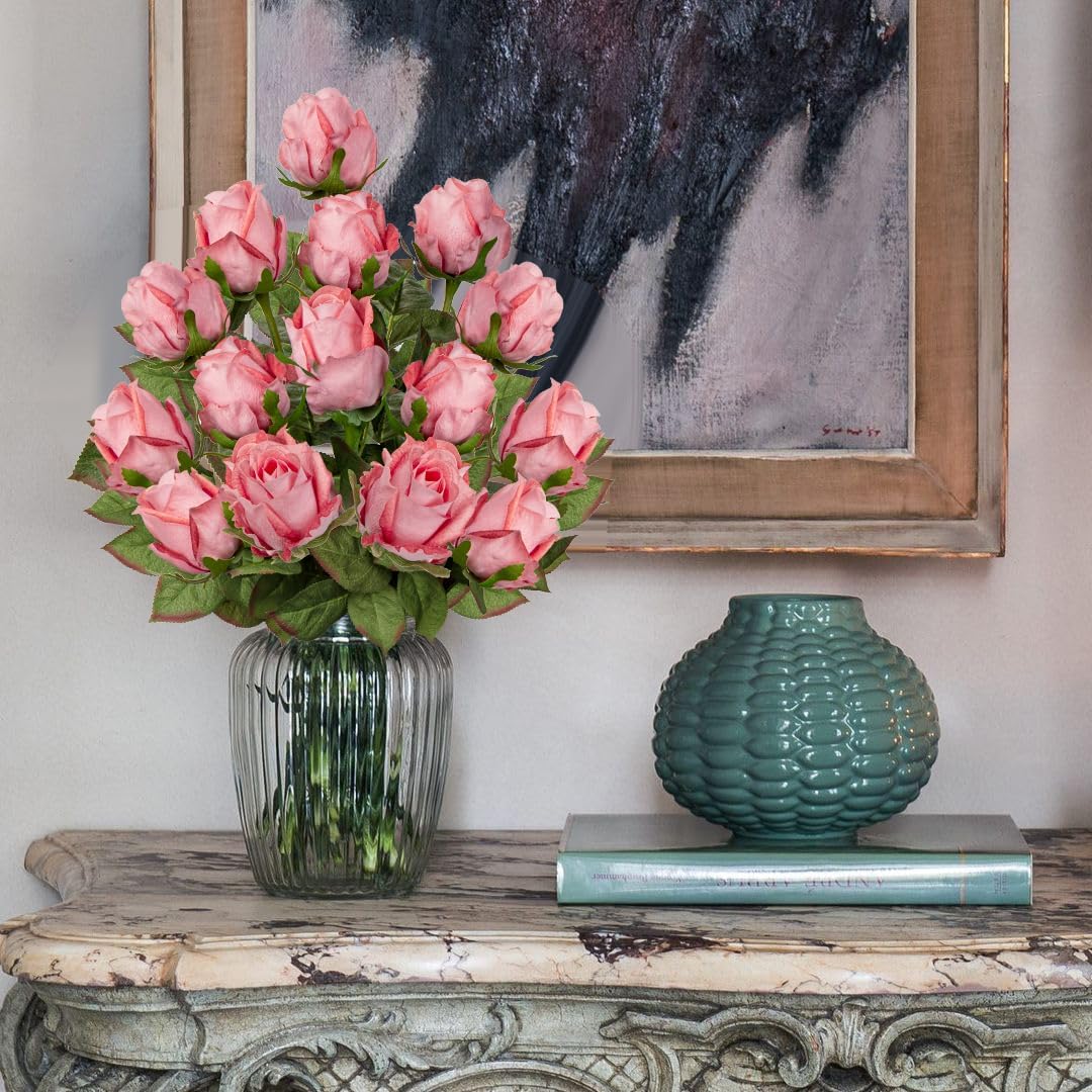 - š¹ NATURAL COLORS & MORE REALISTIC - These faux roses flowers are more vivid and beautiful than other fake foam flowers or fabric flowers. We use a 3D print process to create the colors and the texture of the petals that makes these realistic flowers roses feel moist and real to the touch, and the rose texture are clear and lifelike.Each single rose petal has a realistic texture, fake roses petals with curls edges are just perfect
