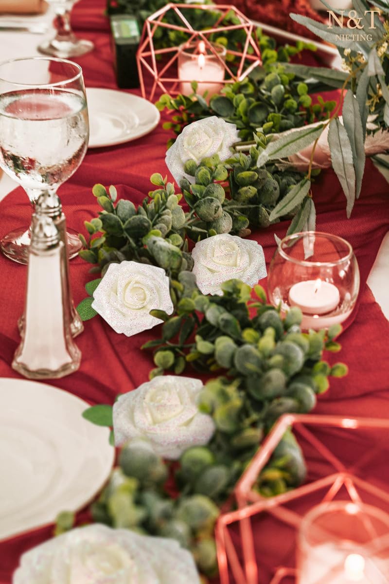 N&T NIETING Artificial Flowers Glitter Roses Flowers 25pcs White Foam Shiny Roses Real Looking Fake Roses with Stem for DIY Wedding Bouquets Centerpieces Bridal Shower Party Home Decorations