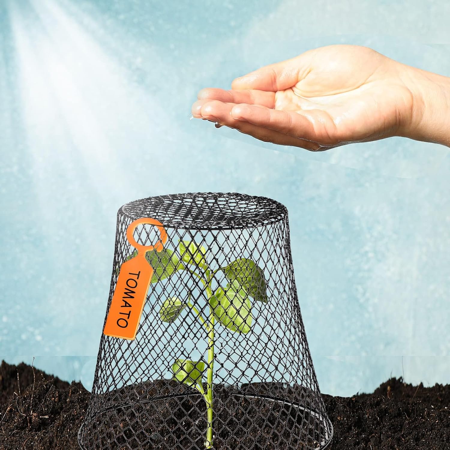 - large quantity:you will receive 10 pieces plant protectors, 30 anchors, 10 white labels and 10 color labels,enough black chicken wire protection basket to provide security for your products and guard the fruits of your labor with our all season plant barrier.