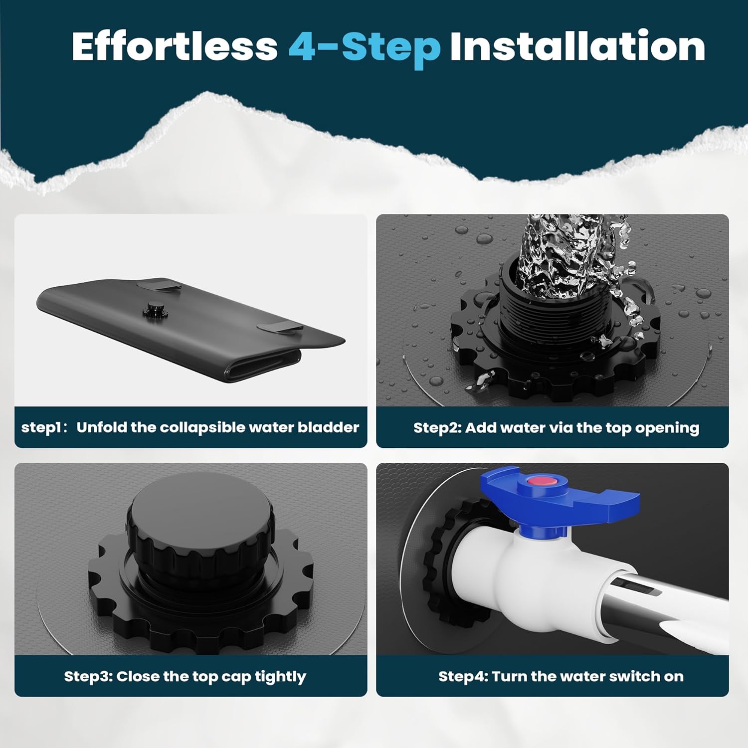 - 💧【Tough and Durable】The bladder tank has unique properties such as rainproof, fireproof, wear-resistant, corrosion-resistant, anti-aging, anti-stretching, and so on. The service life can be up to about 8-10 years, environmental adaptation temperature: -50~+61℃. Summer sunscreen, winter high toughness, can be used for a long time, portable and safe.