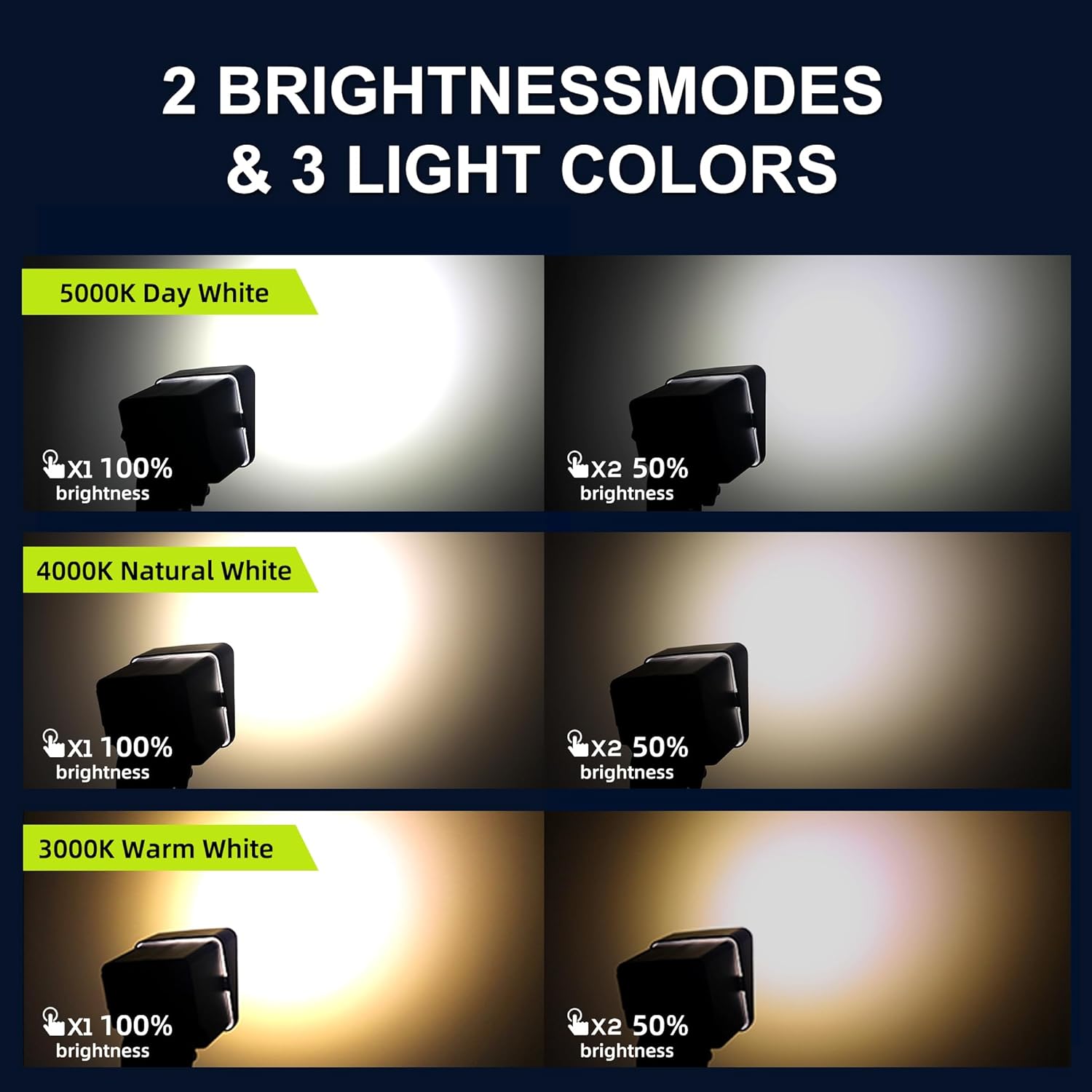 - ➽ CUSTOMIZABLE LIGHTING - Change the settings to find the perfect light! 500 Lumen with high brightness level. Choose between three different light colors...warm white, natural white, and day white and two brightness levels...low 50% and high 100%. Using the lens, you can adjust the beam angle to either 60 degrees or 30 degrees.
