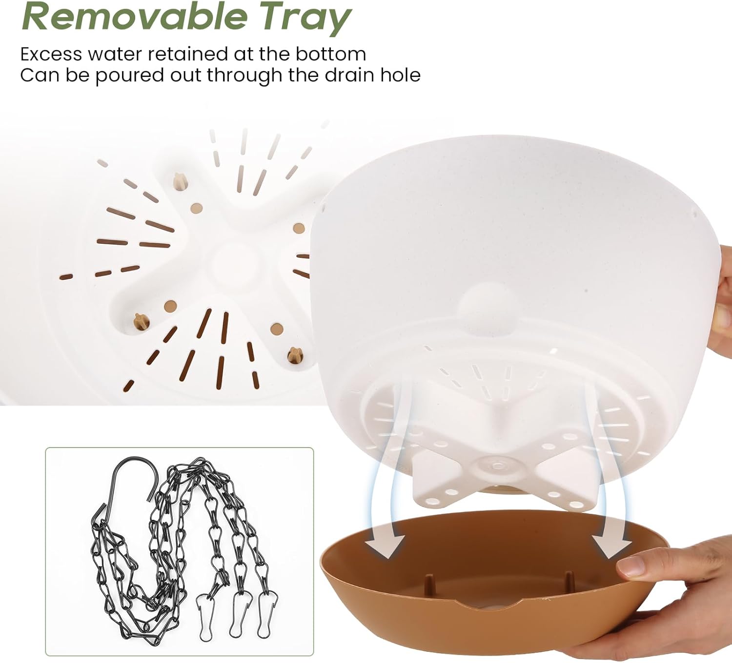 - Strong Bearing Capacity: The hanging basket with high-quality hook can bear more than 20 pounds. It can be hung vertically to save space or removed from the chaining to place it on a tabletop or floor. The garden flowerpot is made of high-grade thickened plastic, which is sturdy, durable and not fragile.