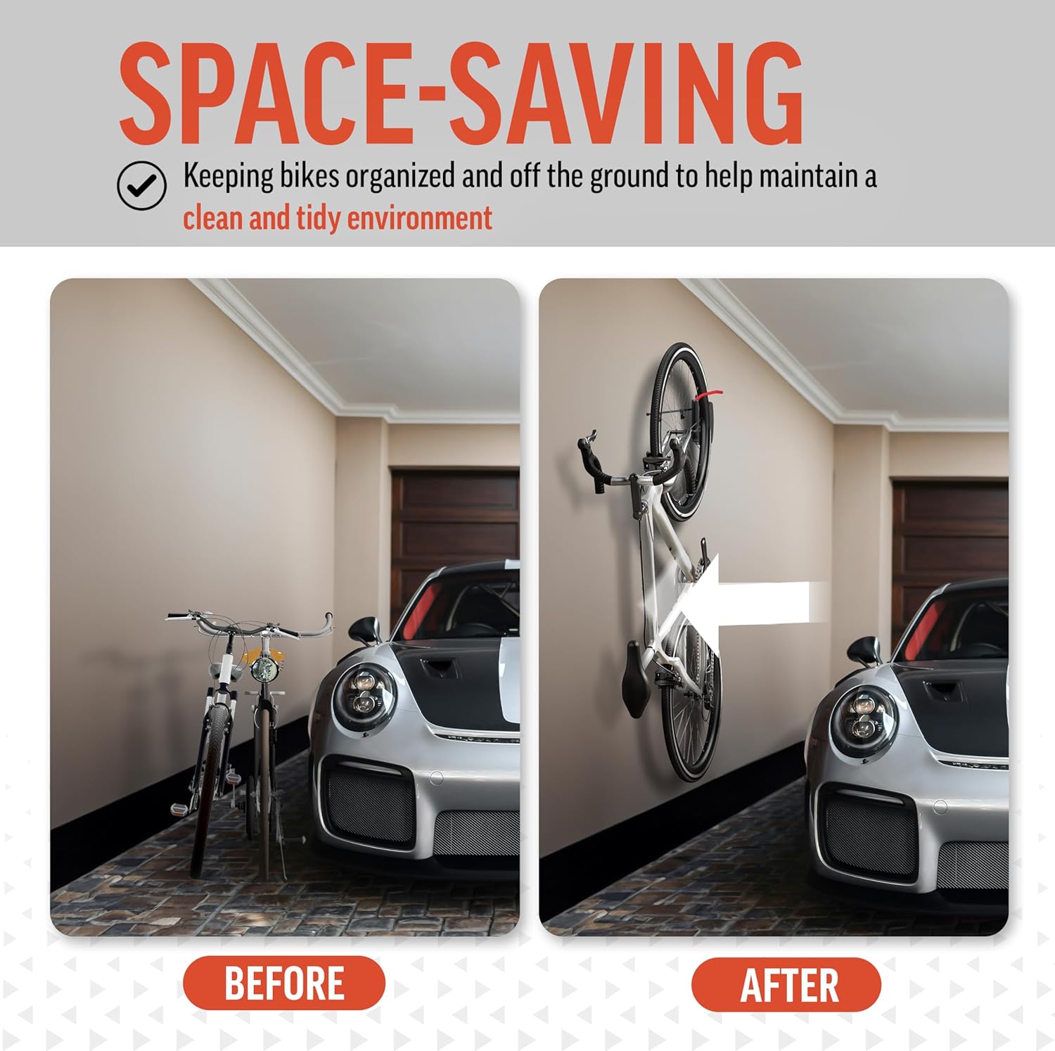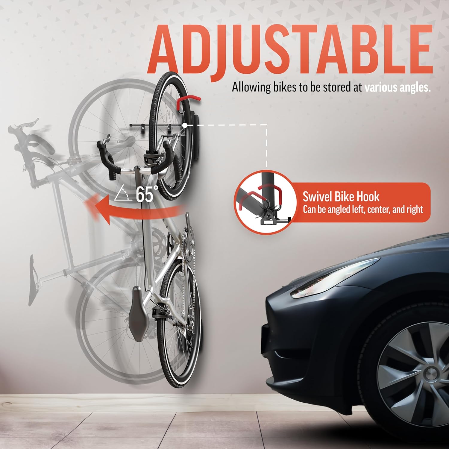 - Pair up and Hang Multiple bikes Elevating any space. Using this Swivel Space Saving Design.
