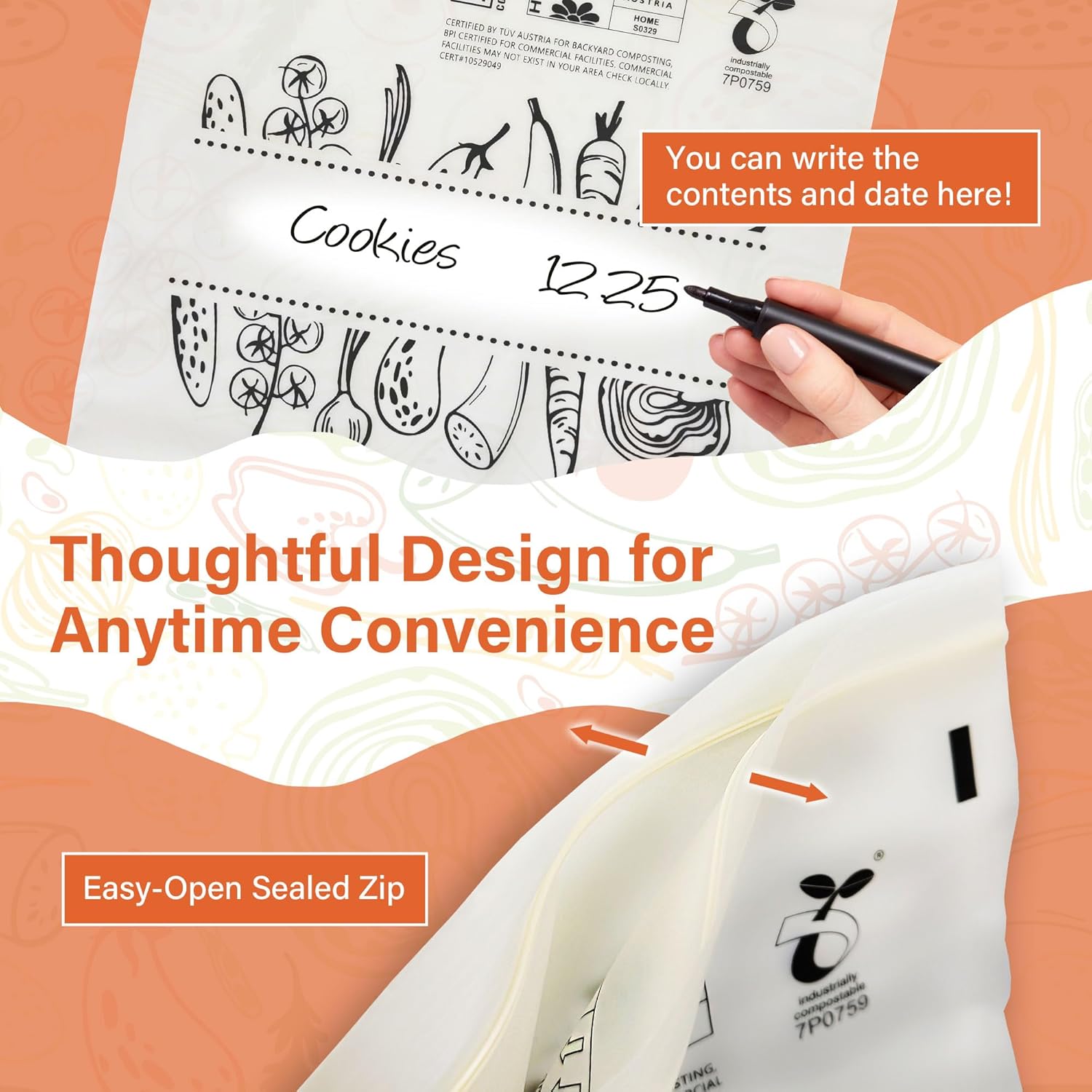 - 💕【Certified Compostable in U.S. & Europe】Heart of Tafiti resealable food storage bags are certified compostable, meeting the highest-rated standards, including ASTM D6400, European EN 13432, and BPI certification, ensuring they decompose in industrial composting facilities.