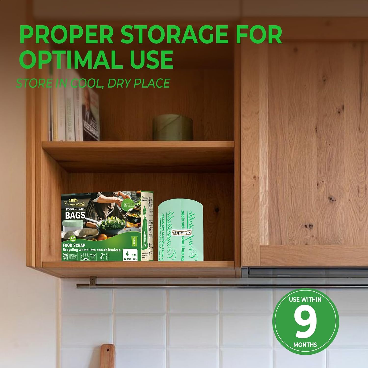 - ăEco-friendly for EnvironmentăT.FORING compostable bags are made from corn starch and plant-based materials,no polyethylene.Bags are durable, nontoxic, easy to use and great for the environment.T.FORING 4 gallon trash bags decomposes fully into CO2, water and organic biomass after 6-12 months, leaving no traces of plastic in the environment.
