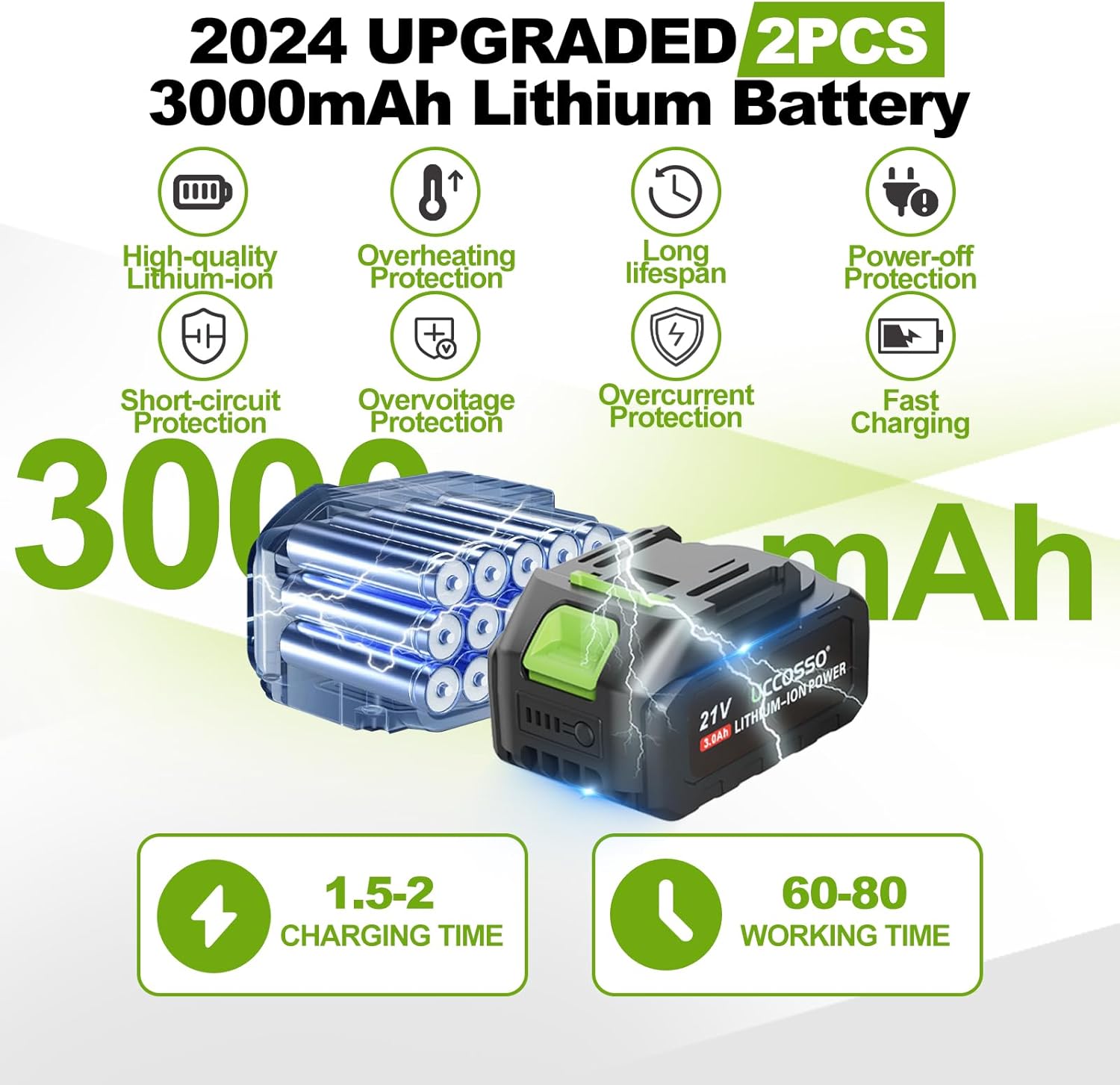 - SMALL CHAINSAW BATTERY POWERED:The cordless mini chainsaw equipped with 2 Pack 3000mAh batteries, this battery powered chainsaw can run continuously for 60-80 minutes,A single battery can cut about 60 pieces of 4-inch or 6-inch logs. When this mini cordless chainsaw battery is dead, you can still replace the spare battery. Rechargeable batteries with self-overload and temperature protection provide longer battery life.