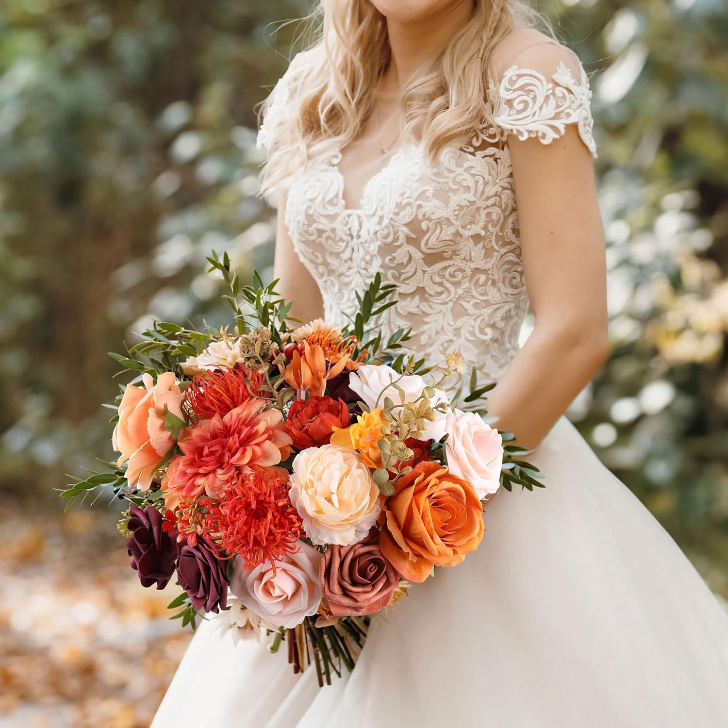 AGIRL Artificial Flowers Combo Silk Mix Purple Fake Flower with Stems for DIY Wedding Bouquets Centerpieces Arrangements Table Chair Decor Baby Shower Home Decor (Terracotta)