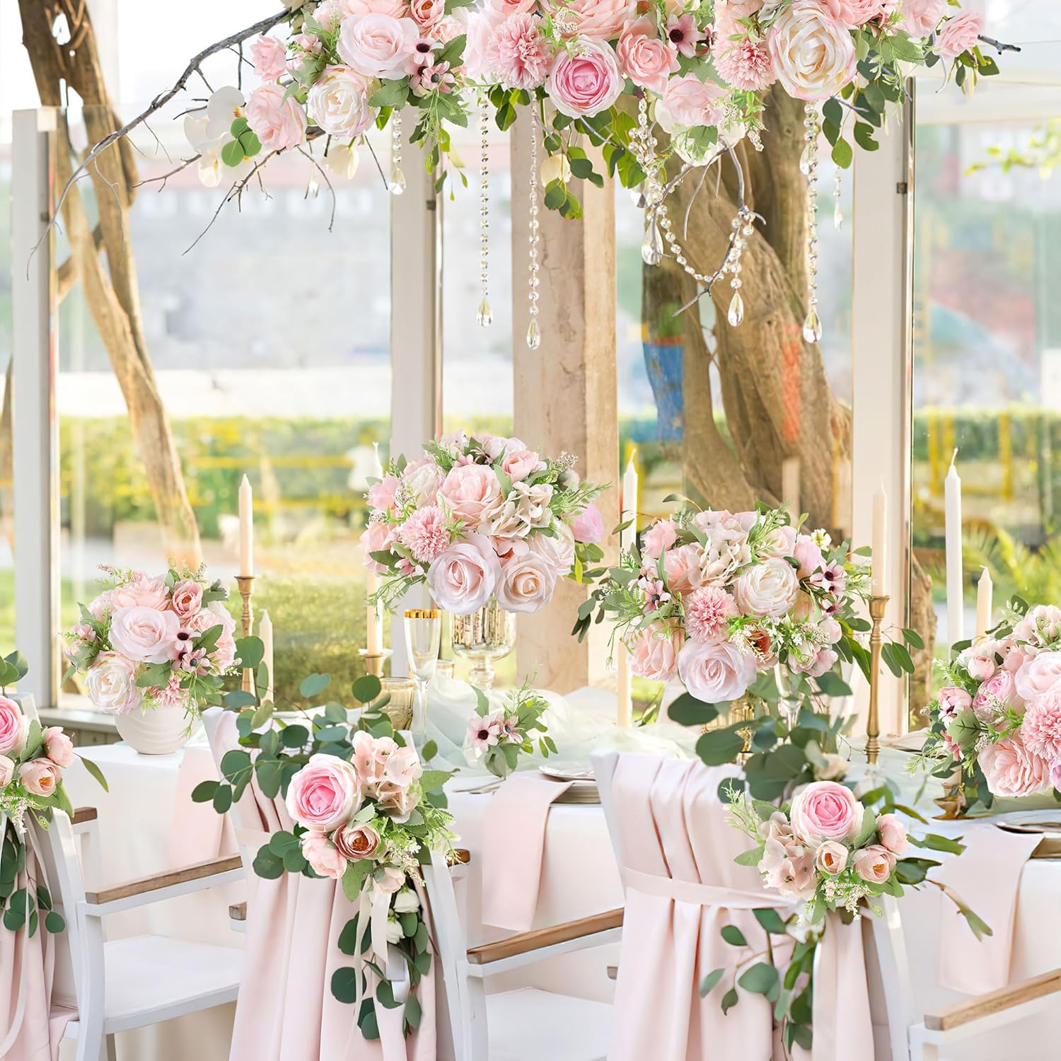 AGIRL Rose Artificial Flowers Combo Fake Flowers Pink Roses Silk Flowers with Stems for DIY Bridal Wedding Bouquets Centerpieces Arrangements Table Party Baby Shower Home Decor
