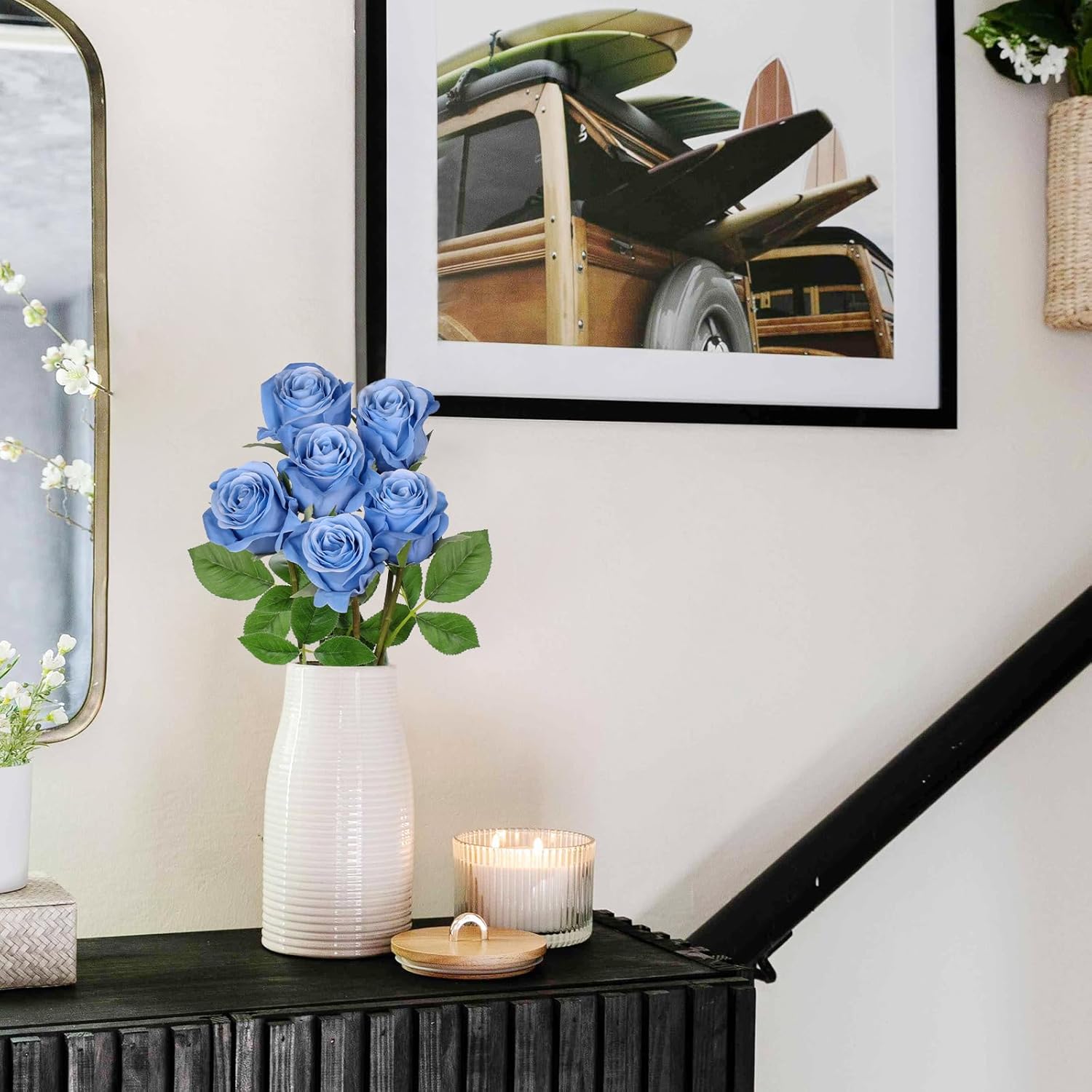 Briful Blue Roses Artificial Flowers– 6PCS 18.9" Faux Rose Silk Flowers with Long Stems Realistic Fake Rose Bouquet for DIY Wedding Arrangements Table Vase Centerpieces Home Event Decor
