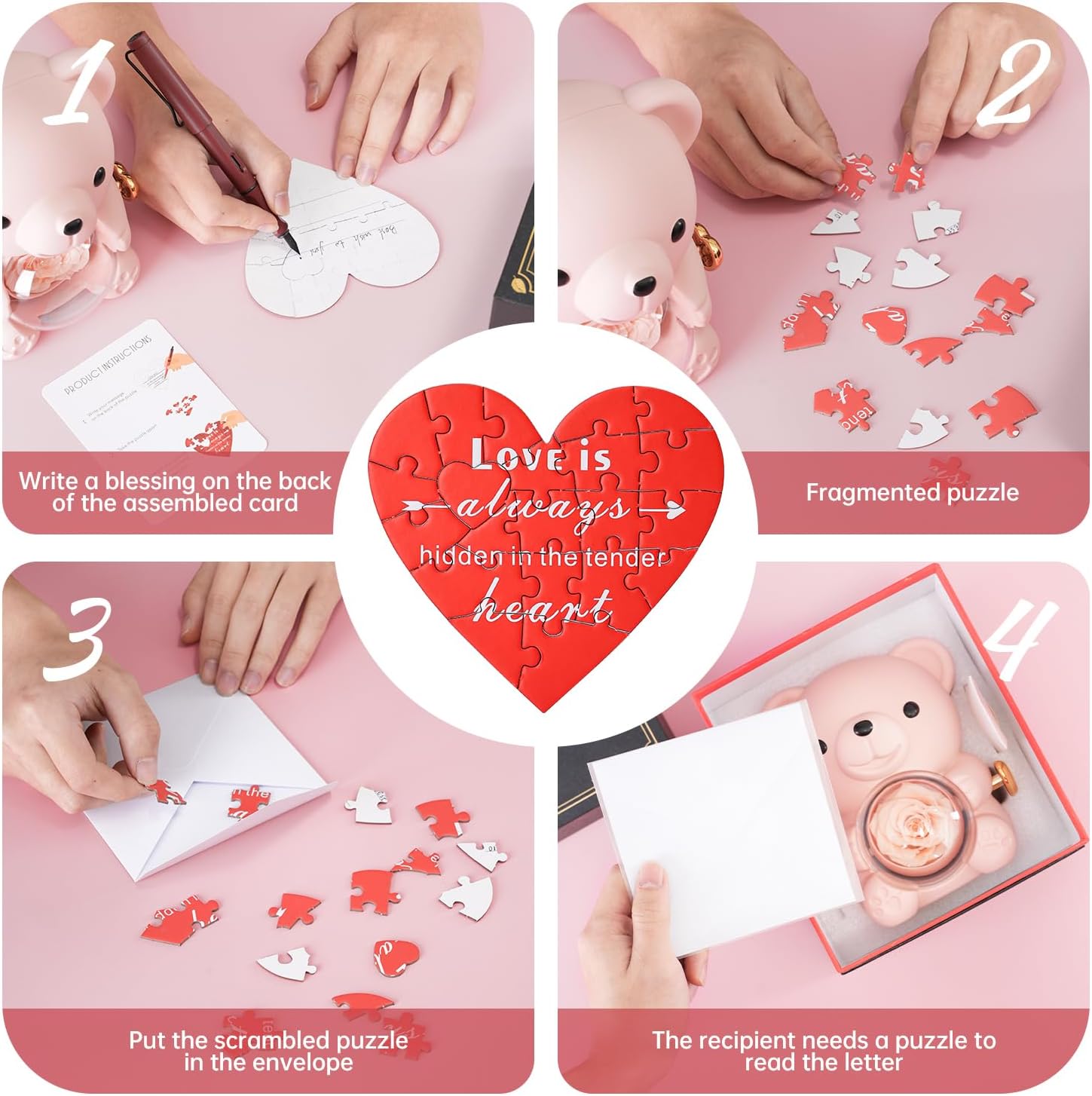 - ๐งฉ Uniquely Designed Love Puzzle: This special love puzzle allows you to write a heartfelt message on the back. Break up the puzzle and place it in an envelope. For your special someone to understand your feelings, they must piece the puzzle together, revealing your message of love.