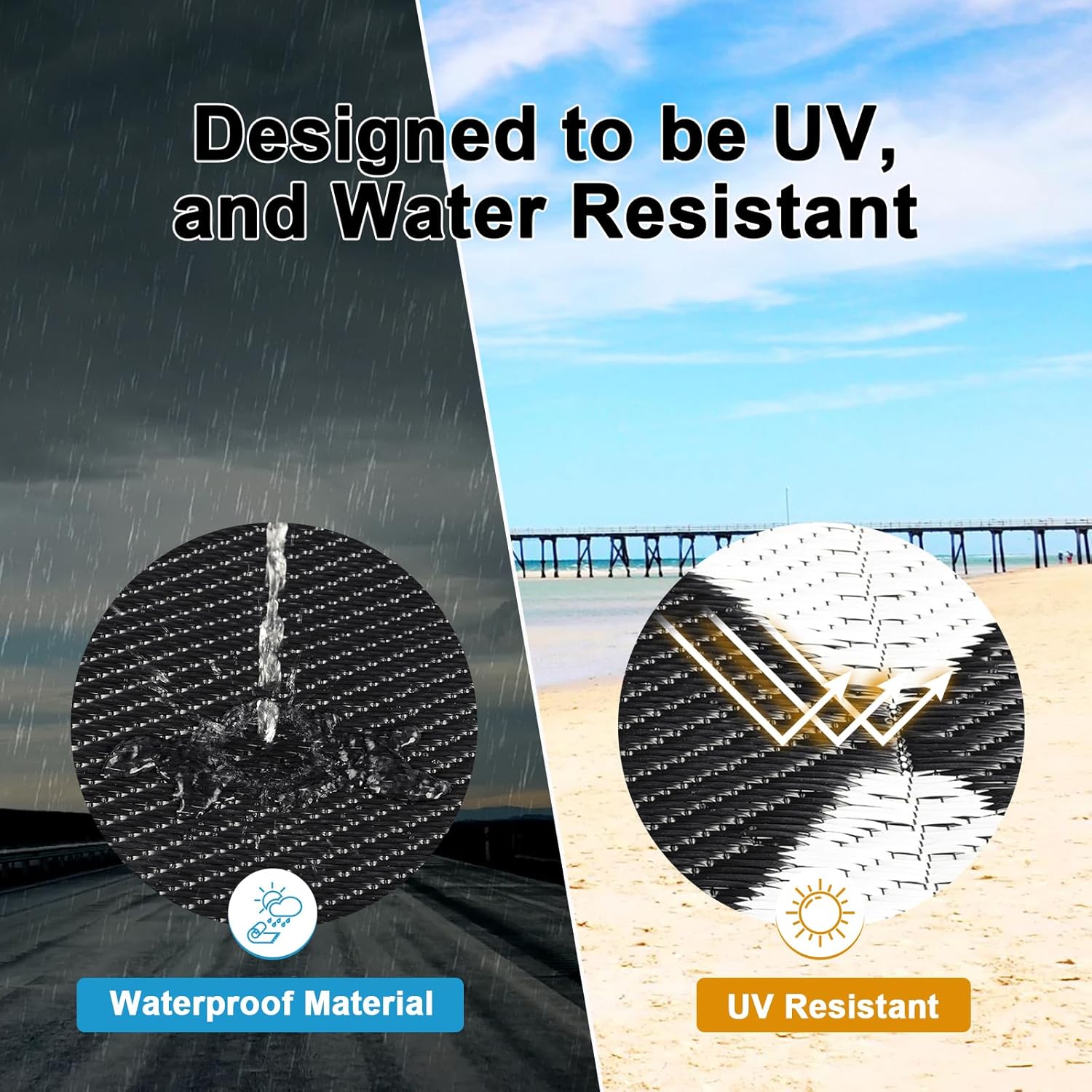 • Easy Maintenance Waterproof Patio Rugs : Compared with other camper rugs, this camping outdoor rug is simply wipe or hose off; For a deep clean, you can use a wet soft cloth with mild soap and rinse with water.