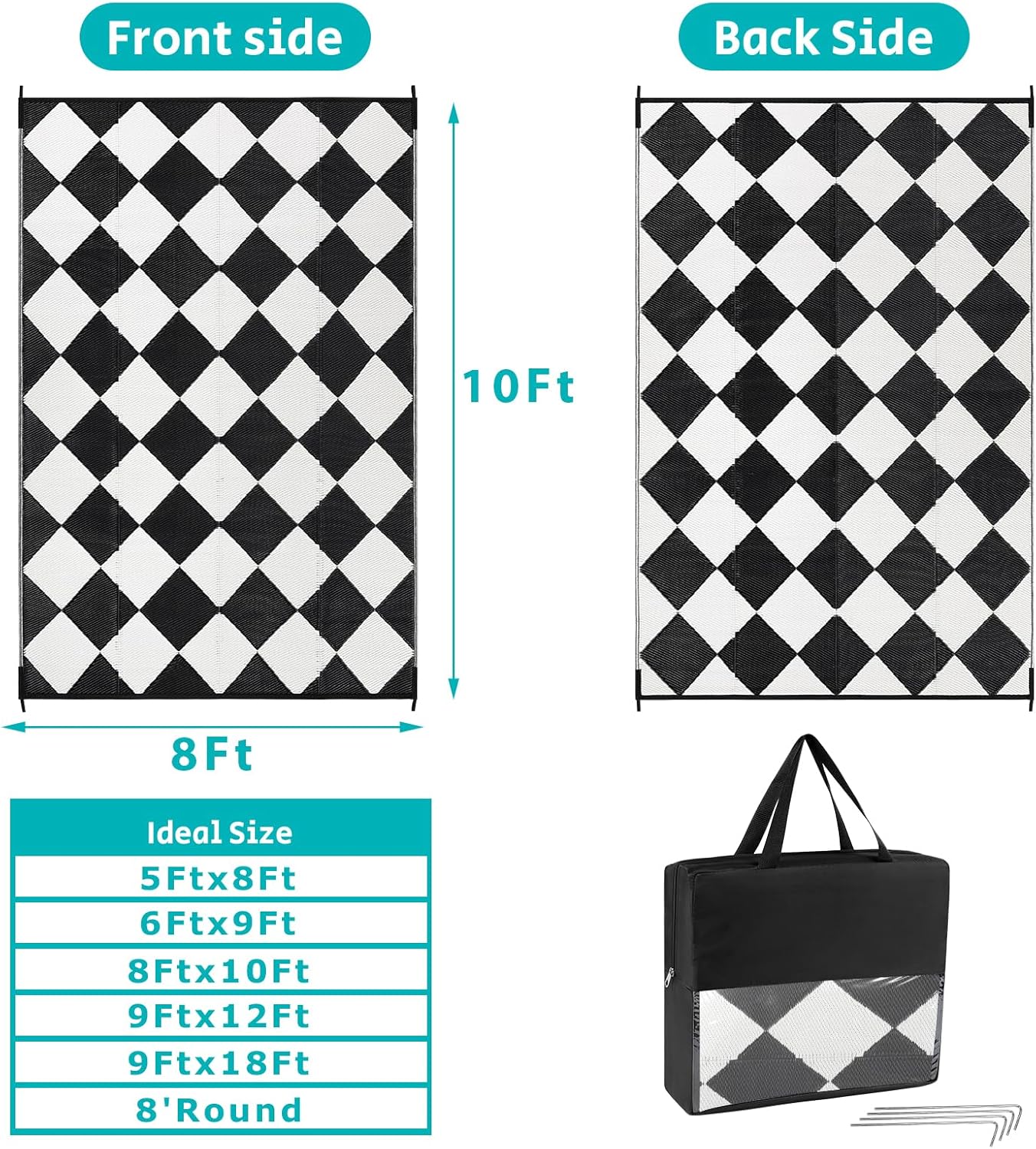• Versatile Outdoor Carpet: The indoor outdoor plastic rugs have multiple choice in different colors(4'x6',5'x8',6'x9',8'x10',9'x12',9'x18',8'round), is ideal for a variety of indoor outdoor activities,like patio mat, deck rug, garden rug, beach mat, picnic mat, BBQ party mat, rv camping rug,pool rug,outdoor doormat,garage rug,front door mat,allowing you to have plenty of imaginable space for more fun.