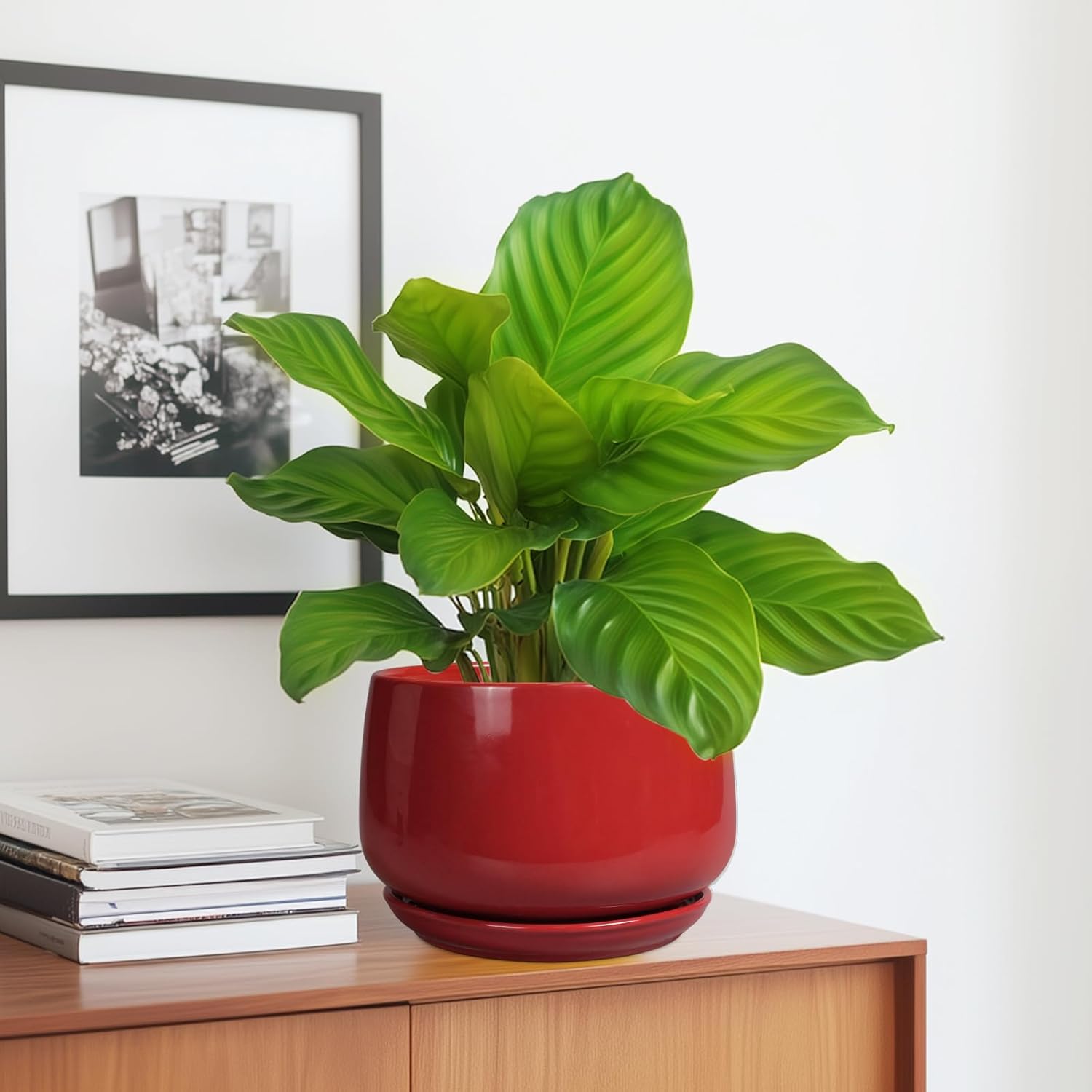 - Modern Planter: Adopting elegant modern design, classic ceramic indoor planter with curved contours, red planter add highlights to your indoor or outdoor space decoration, suitable for various styles of home decor, room decor, bathroom decor, living room decor, office decor, garden decor