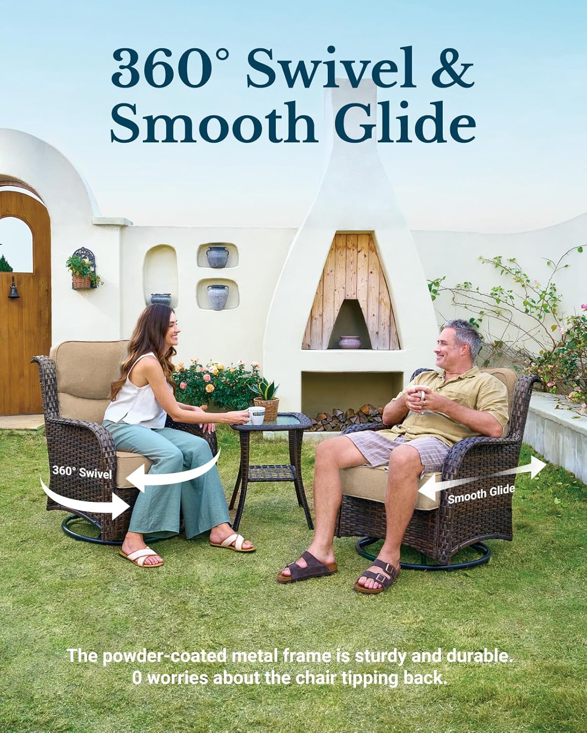 - Smooth 360° Swivel & Glide: Enjoy smooth 360° rotation and gentle rocking for hours of effortless relaxation with this chair. Whether you're sipping tea at sunset, enjoying quiet moments alone, or gathered with friends and elderly loved ones for weekend chats—creating a warm, inviting space for meaningful connections anytime