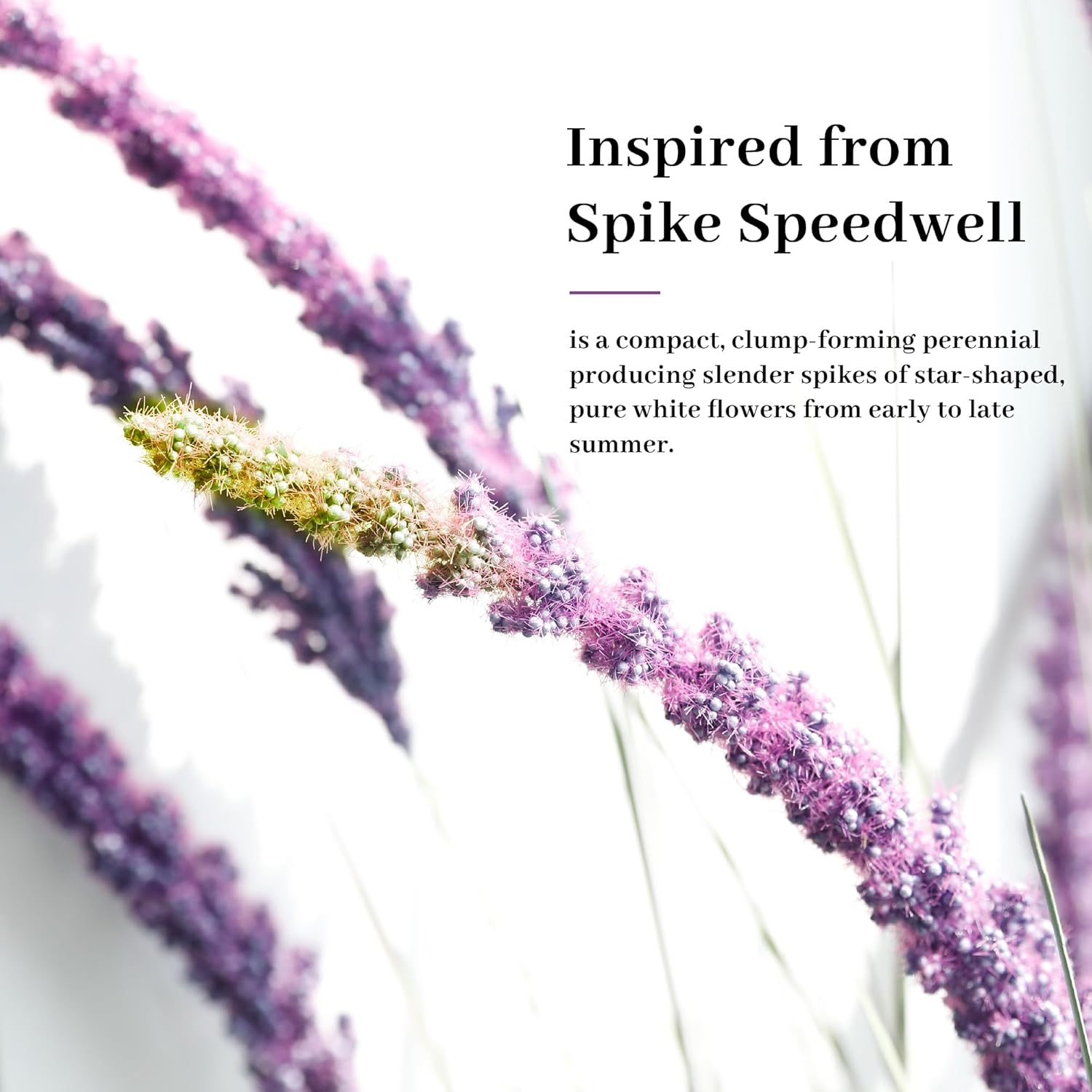 - Stunning Purple Faux Veronica Design: Inspired by the natural beauty of veronica spiked speedwell. Every detail, from the textured leaves to the delicate spikelets, is meticulously crafted to mimic the natural beauty of veronica spiked speedwell, this artificial grass features realistic purple wheat-like spikelets and lush green leaves, adding a touch of elegance to any space