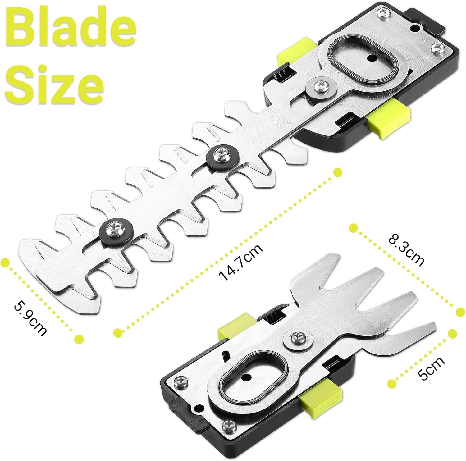 - Sharp Blades: The handheld hedge trimmer is fitted with sharp, durable blades that provide excellent trimming results for lawns, hedges, or small shrubs in the courtyard. The blades measure 5.79 inches in length for hedge trimming and 3.26 inches in width for grass trimming