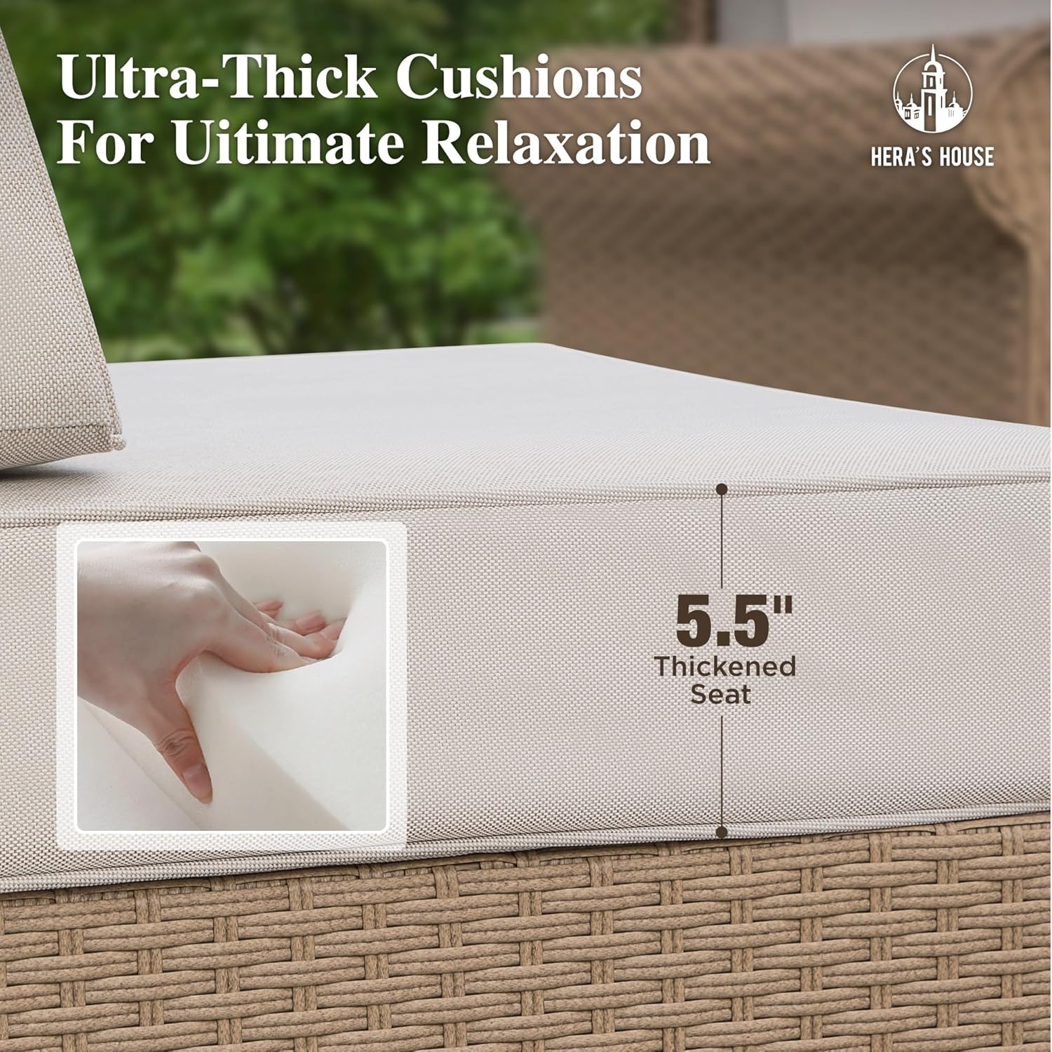 HERA'S HOUSE Patio Loveseat Set, All-Weather 2 Seats Outdoor Sectional Wicker Sofa, 5.5" Thick Cushions, 5.9" Wide Armrests, 2-Piece Modular Conversation Set for Patio, Lawn, Backyard, Garden