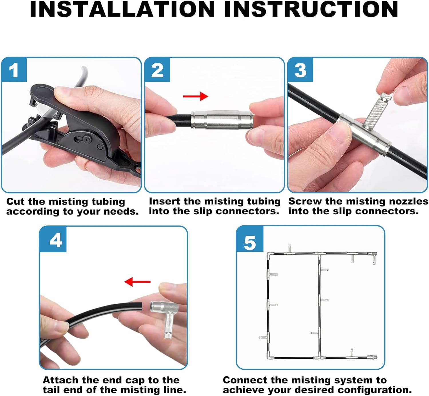 - 【Complete Misting Solution】 This kit includes 10 precision misting nozzles and 10 durable slip connectors, giving you a full set for a complete misting system or for easy replacement when needed.