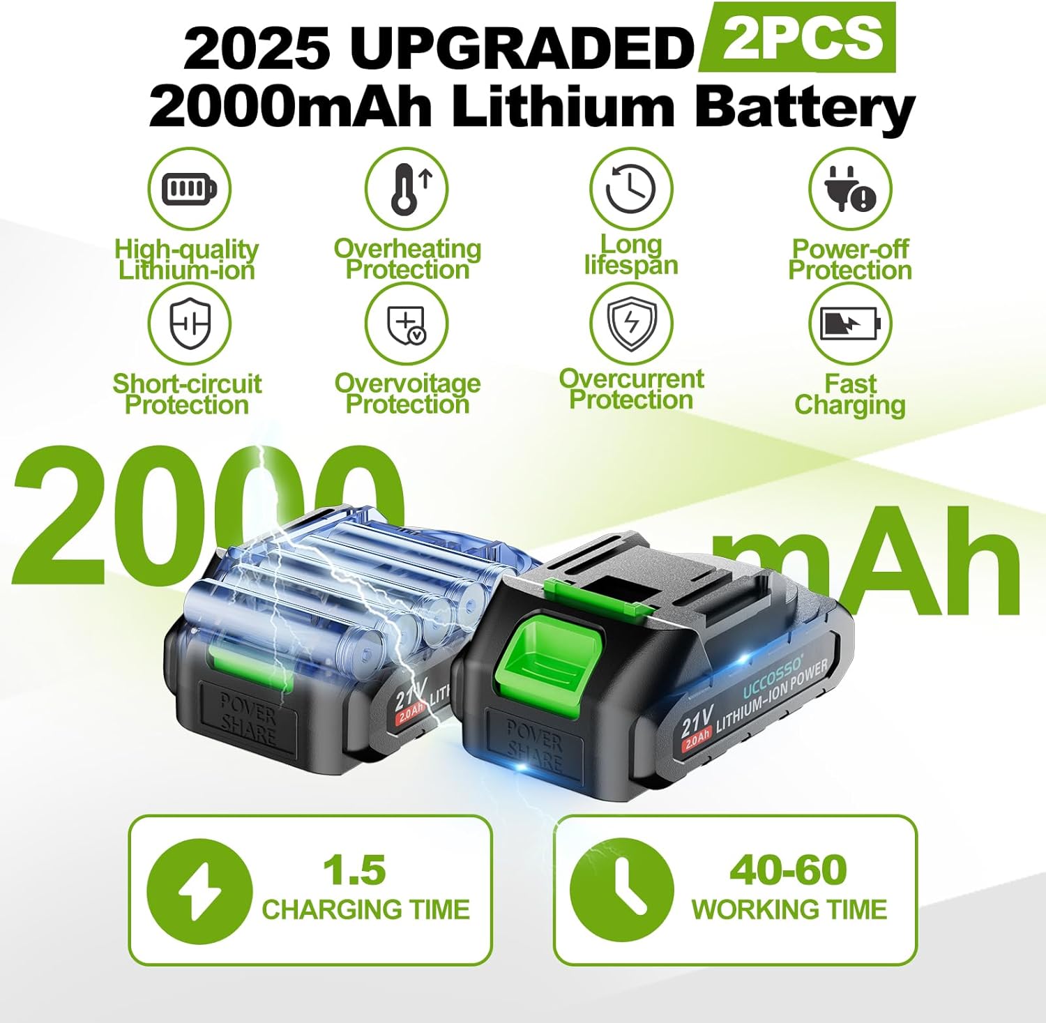 - 【2x2000mAh Large Capacity Battery】This mini chainsaw 6 inch cordless delivers 2x2000mAh removable batteries (1.5hr full charge) for 60+ continuous cuts. Built-in temperature protection ensures safety when trimming trees in gardens, farms, or camping trips.