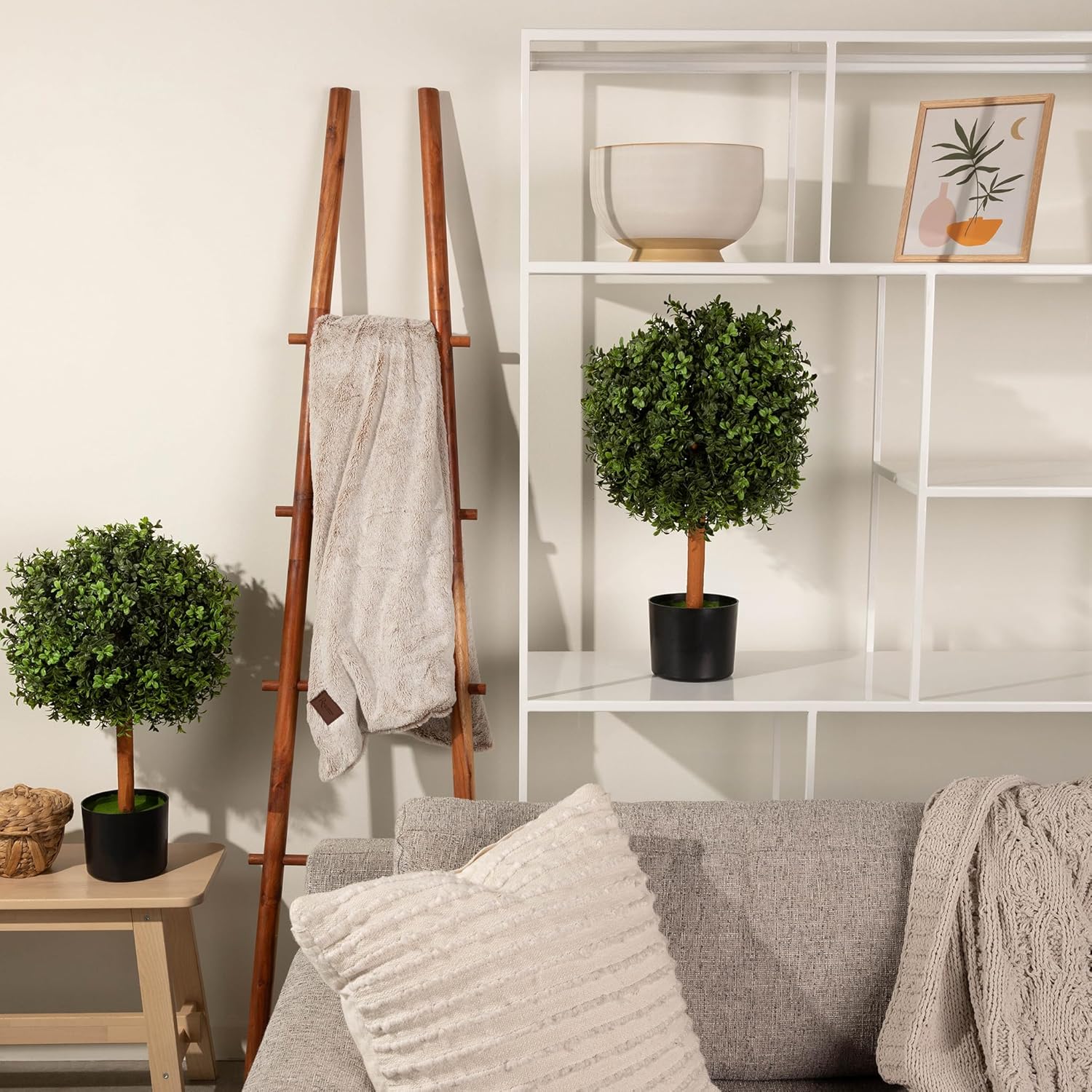 Premium 14" Diameter Artificial Boxwood Topiary – Set of 2 Faux Plants in Black Decorative Planters – UV-Resistant, Weatherproof, Realistic Outdoor & Indoor Greenery Accent