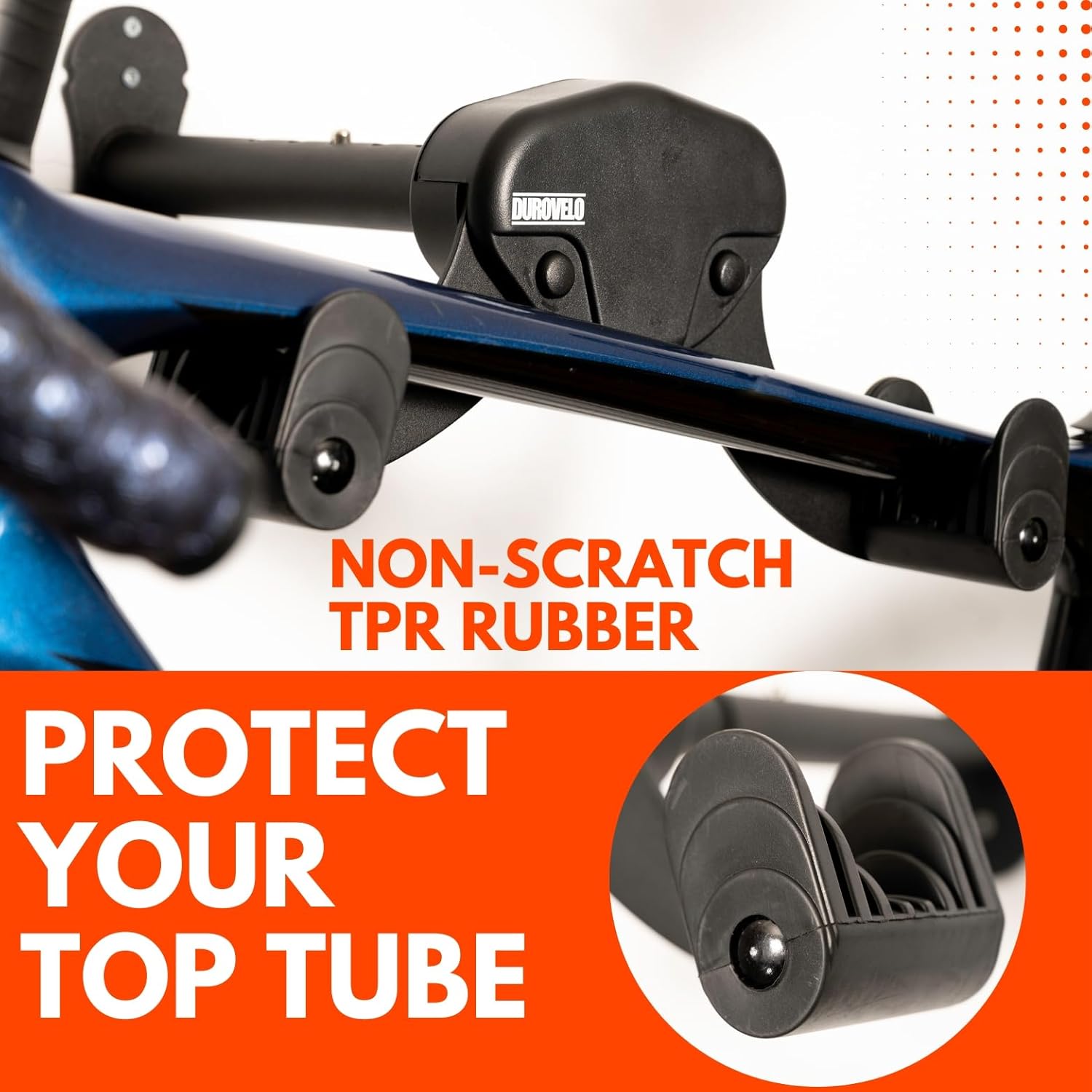 - PROTECT YOUR BIKE FRAME: Super soft NonScratch TPR rubber cradles safeguard aluminum, carbon, and steel frames from scratches. Includes an elastic rope to stabilize the front wheel, preventing wall scuffs and movement. Perfect for preserving your bike’s finish.