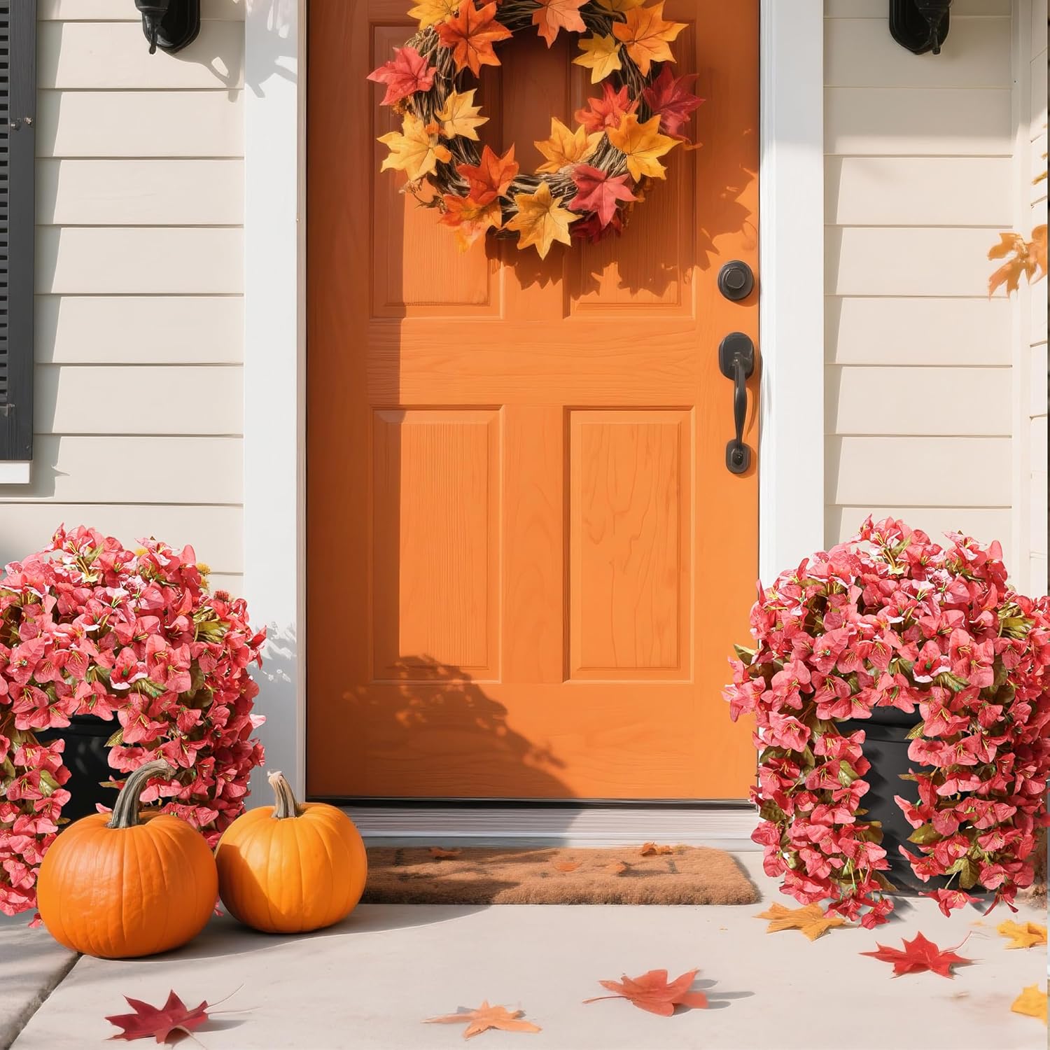 - ✅️ Realistic Hanging Flowers Fall Home Decorations: Beautiful fake fall flowers are suitable for home, garden, yard, porch, balcony, patio, window box, urn, planter, wall, fence, indoor and outside decorations. Brings beauty to your home. These faux bougainvillea outdoor are real looking and brings autumn beauty and joy to your home.