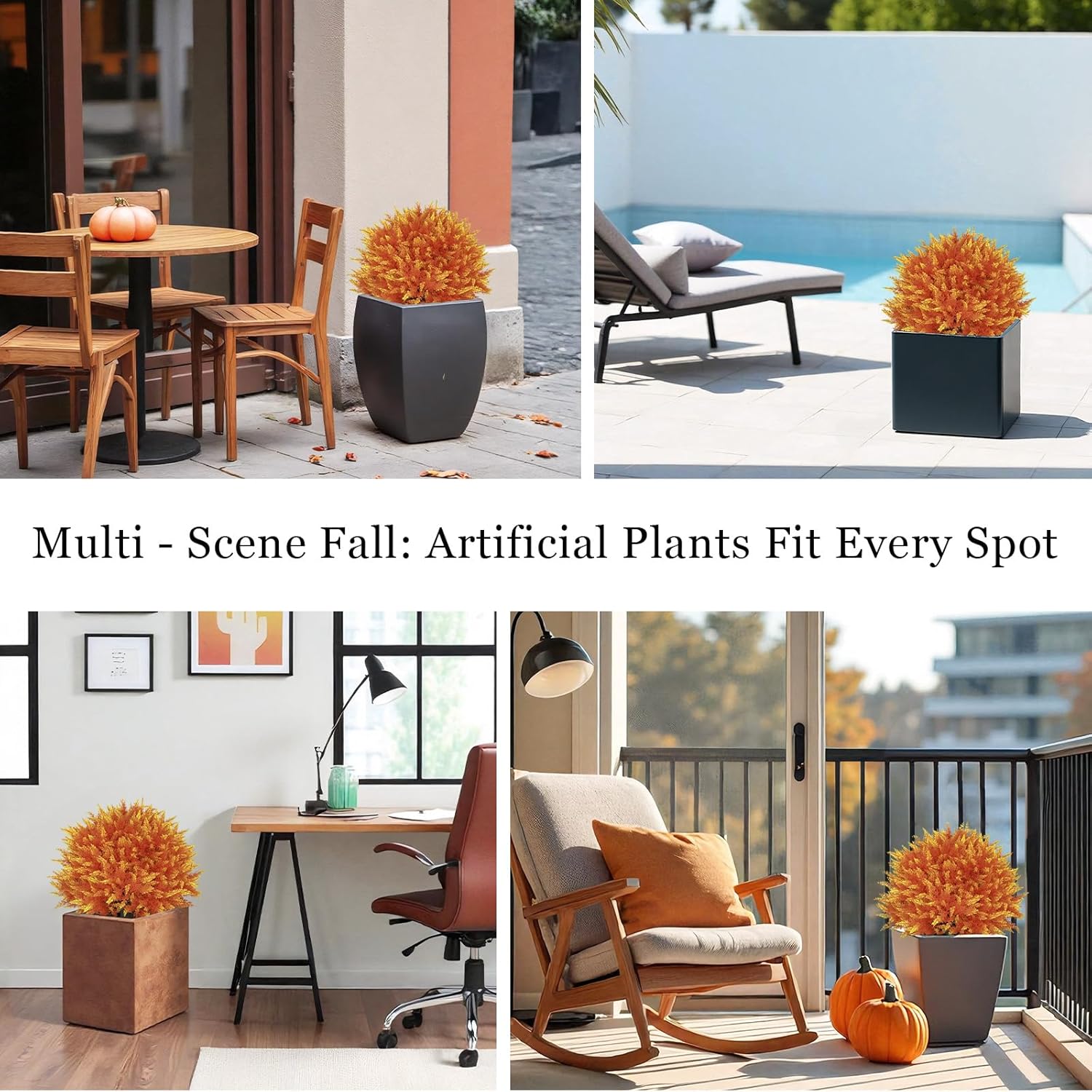 - 【UV Resistant & Weatherproof – Outdoor Durable】Made with UV-protected plastic, these artificial outdoor plants resist fading and cracking, even under autumn sun, wind, or rain. A long-lasting way to keep your fall décor bright and festive