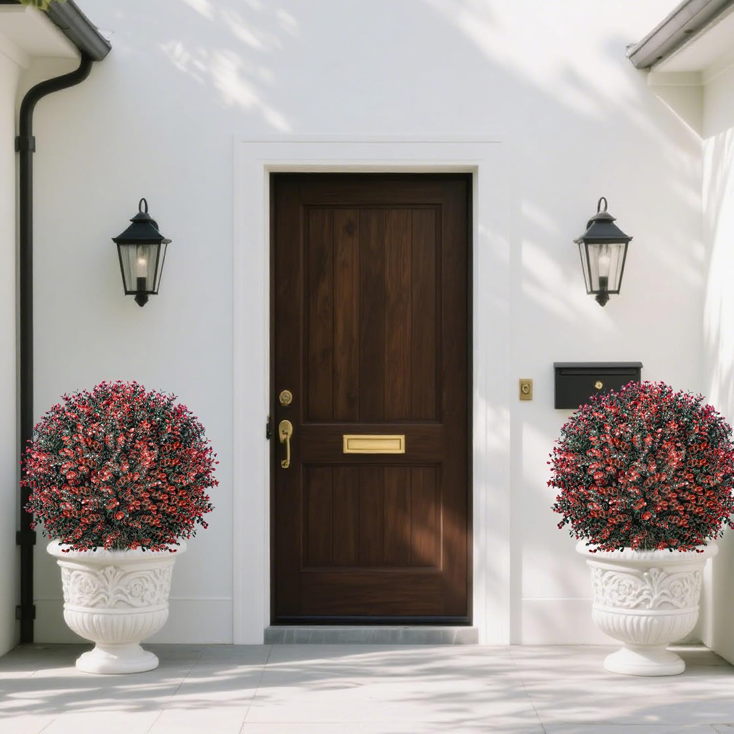 - 🌿Updated Material of Artificial Boxwood Ball Tree: Red+Green color more likes natural plants. UV resistant, fade-proof PE material,Size:17*24"(include 7"stake).Diameter:17".