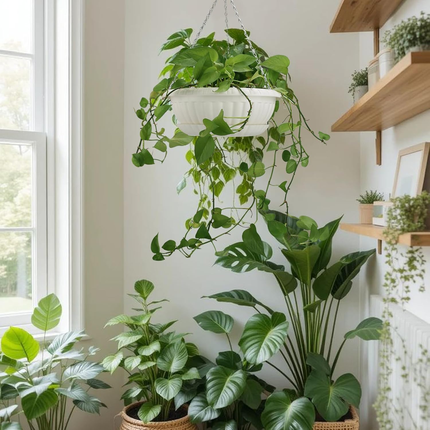 10.63in Hanging Planter Pots for Outdoor and Indoor Plants Flowers with Drainage Hole Tray Hooks Plastic Plant Baskets for Garden Home Porch (White, Pack of 6)