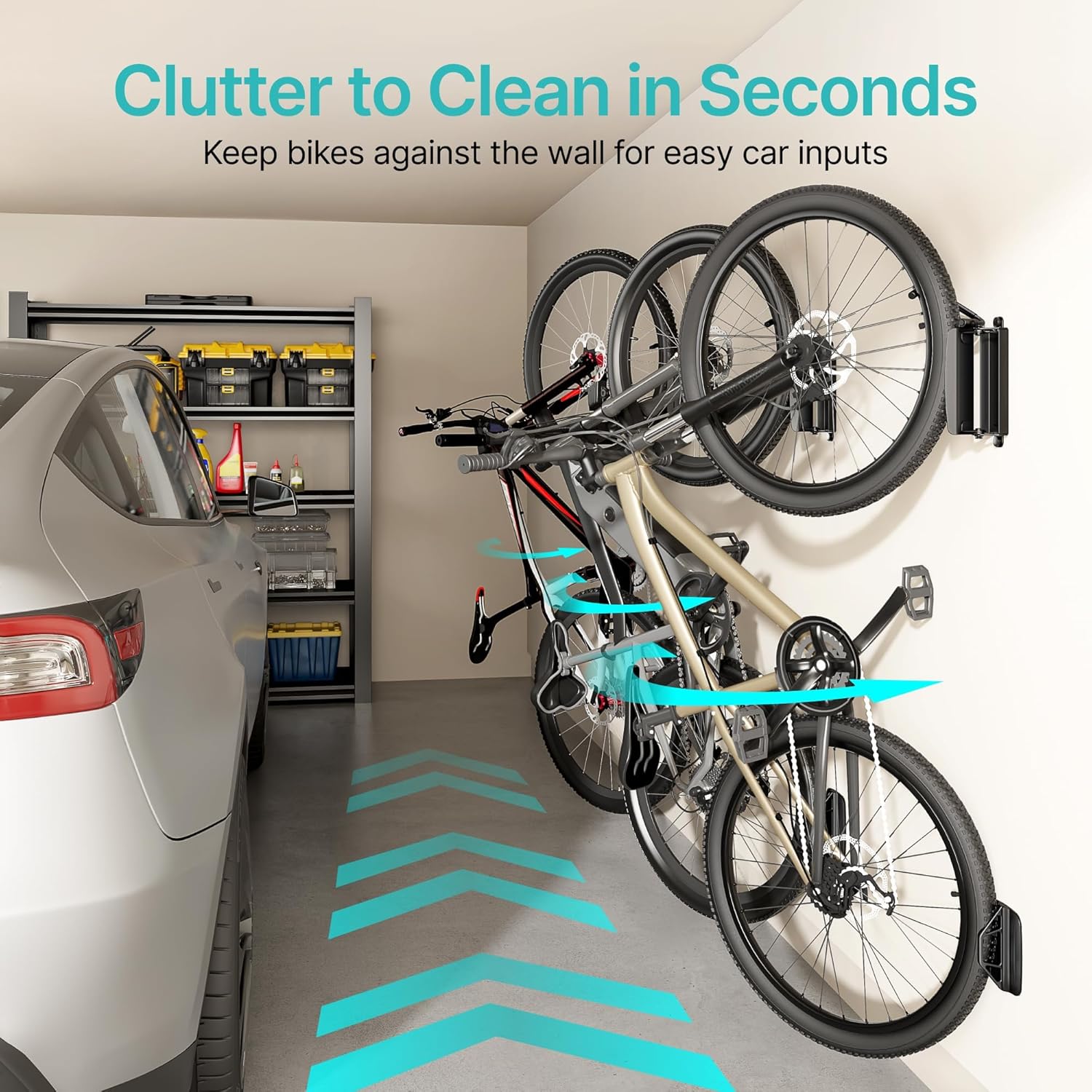 Bike Rack Garage, Bike Wall Mount Heavy Duty, Holds 77 Lbs, Swivel Bike Hangers for Garage, Adjustable Indoor Bike Storage for Bedroom Home Office, 1 Pack