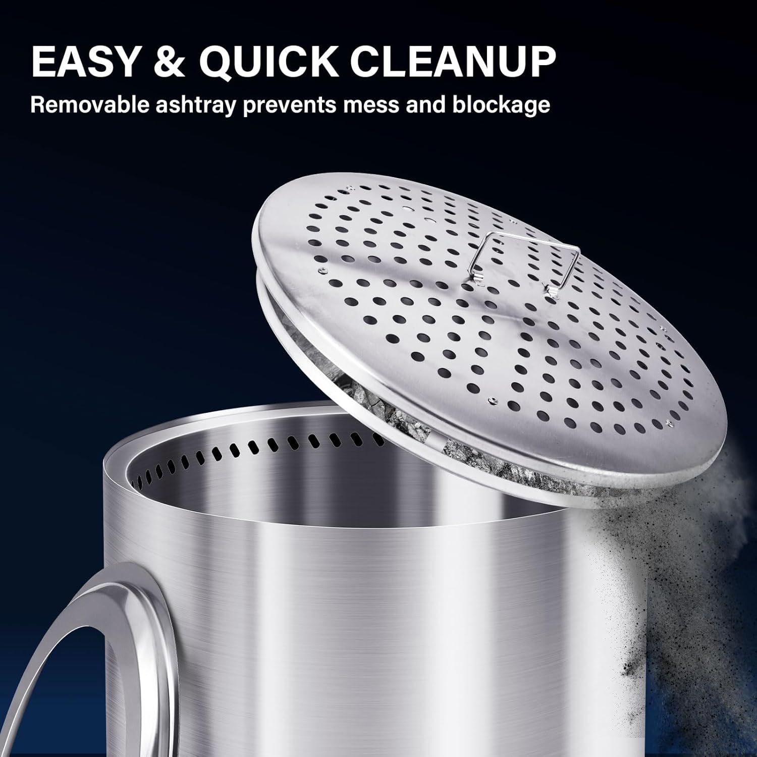 - Removable Ash Pan: The smokeless fire pit have a removable integrated ash pan and burning plate, no need to turn the whole stove over to dump out ash, much easier to clean after a outdoor burning