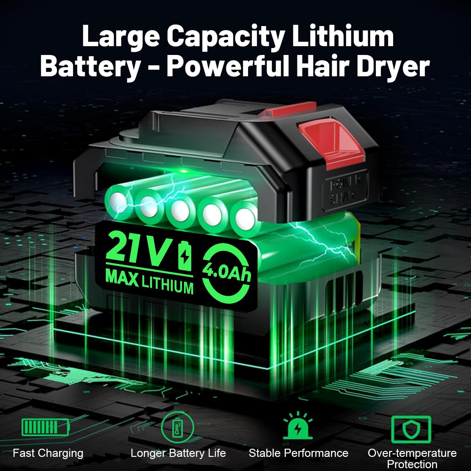 - ăAdjustable Speed Mode & Safety TipsăLeaf blowers adopts an infinitely variable speed switch, allowing you to achieve the desired wind intensity according to different cleaning needs. The battery features built-in temperature control protection for safe charging. When charging, the indicator light displays red, and when fully charged, the indicator light will turn green. To maximize the lifespan of the battery, please fully charge it when not in use.