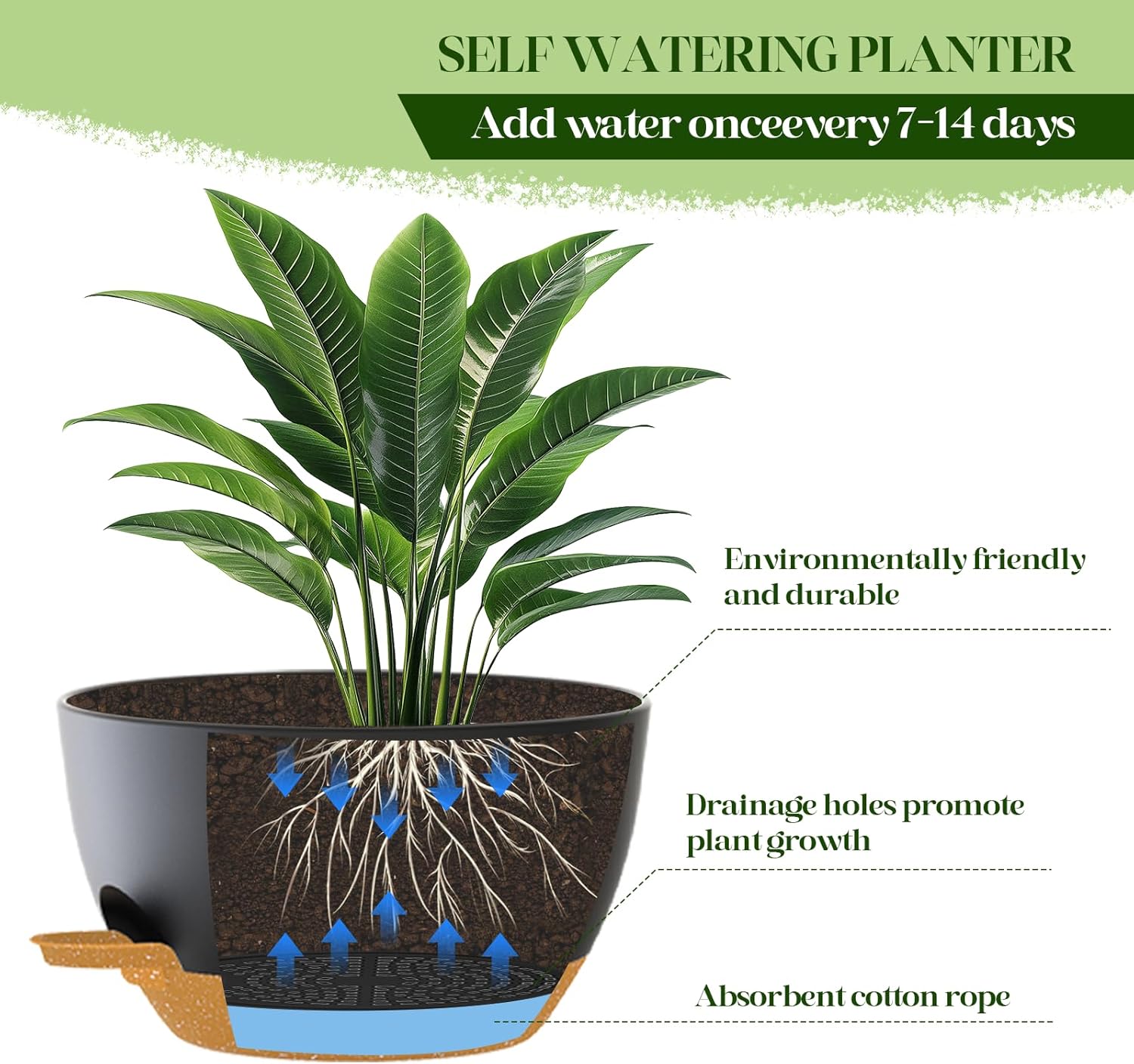 - š§ EASY WATER MANAGEMENT: Patented self-watering system delivers water to the roots for up to 2 weeks! Includes water dispenser for easy filling and removable reservoir for easy cleaning.