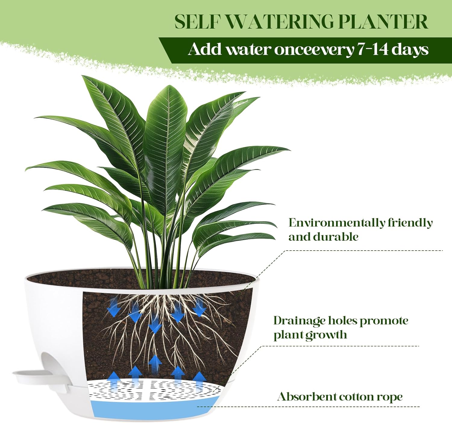- ā 2 Large Self-Watering Planters: Double the value! Includes two 10-inch wide plastic hanging planters with built-in self-watering reservoirs to reduce the need for frequent watering and keep plants healthier.