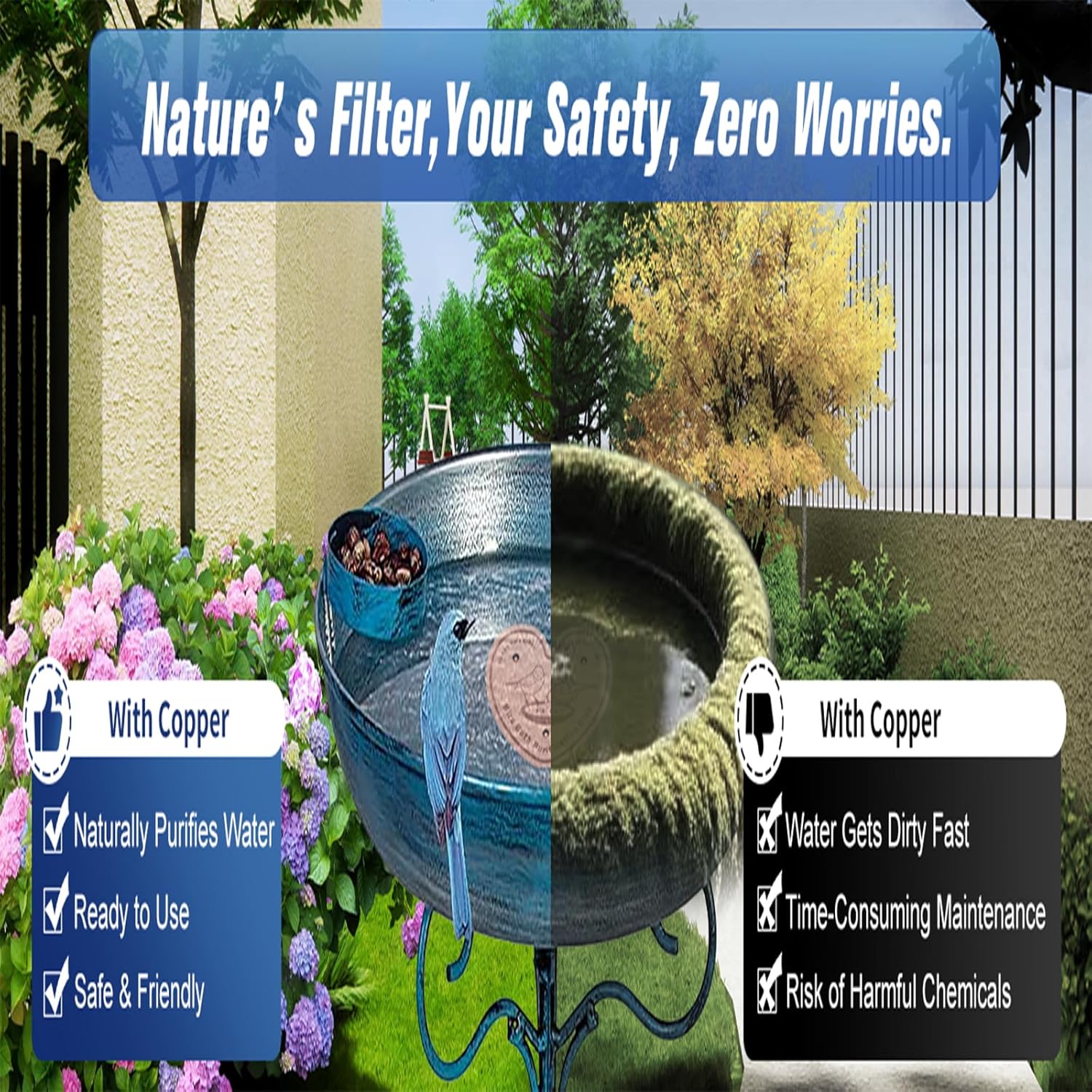 - High-Purity Copper Material:Made of 99.9% pure copper (0.6mm thick), these discs naturally help maintain cleaner water in bird baths by inhibiting algae buildup.