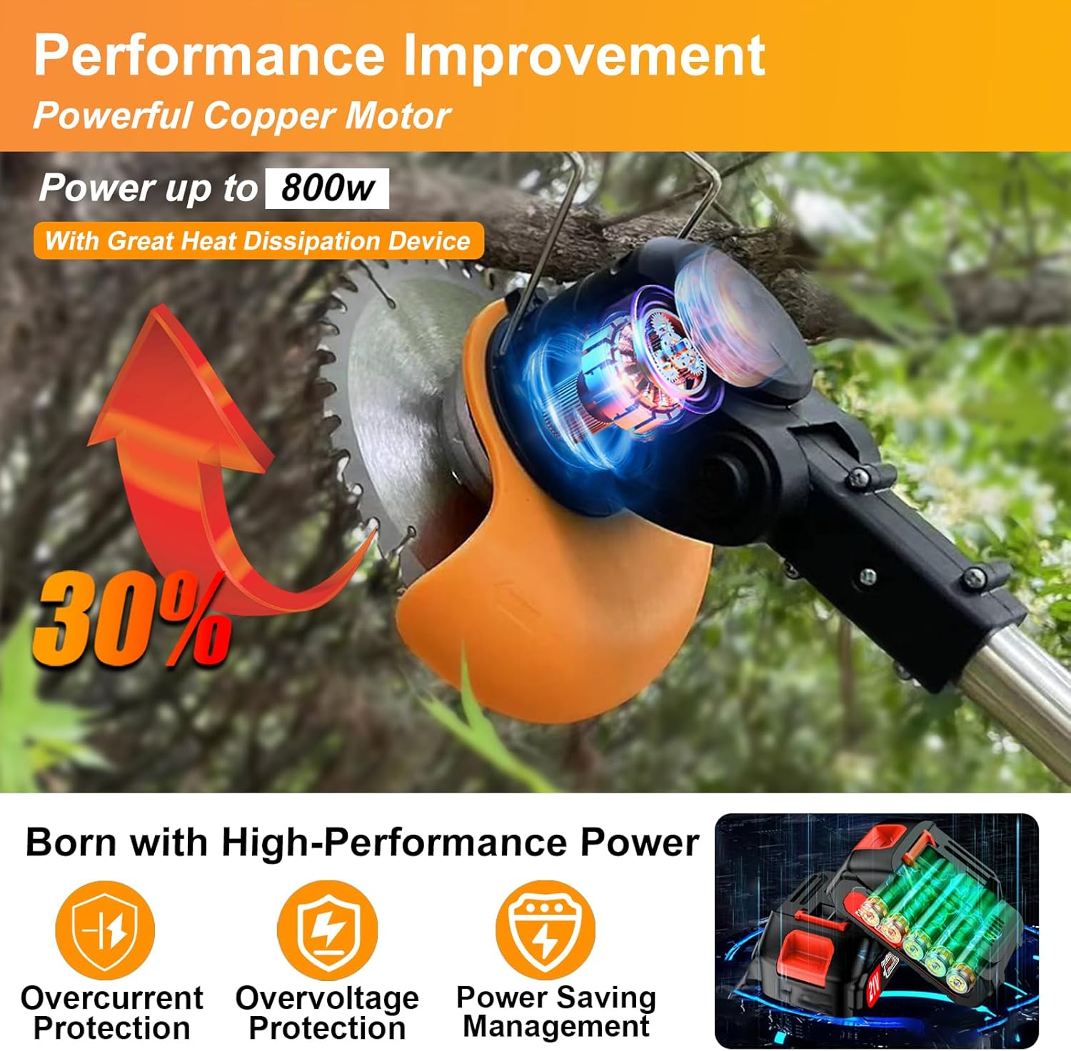 - 【Lightweight & Easy To Use & Low Noise】 The weed wacker battery operated just 3.25 pounds, lightweight and easy to use for women, children and the elderly. Dual on/off button design stops accidental activation from causing injury. The weed splash guard stops cut weeds from splashing. Optimized for noise reduction, it operates at an extremely low 72 decibels, so it won't disturb your neighbors' sleep. Ideal for quiet mowing around yards and bushes, walkways, patios and more