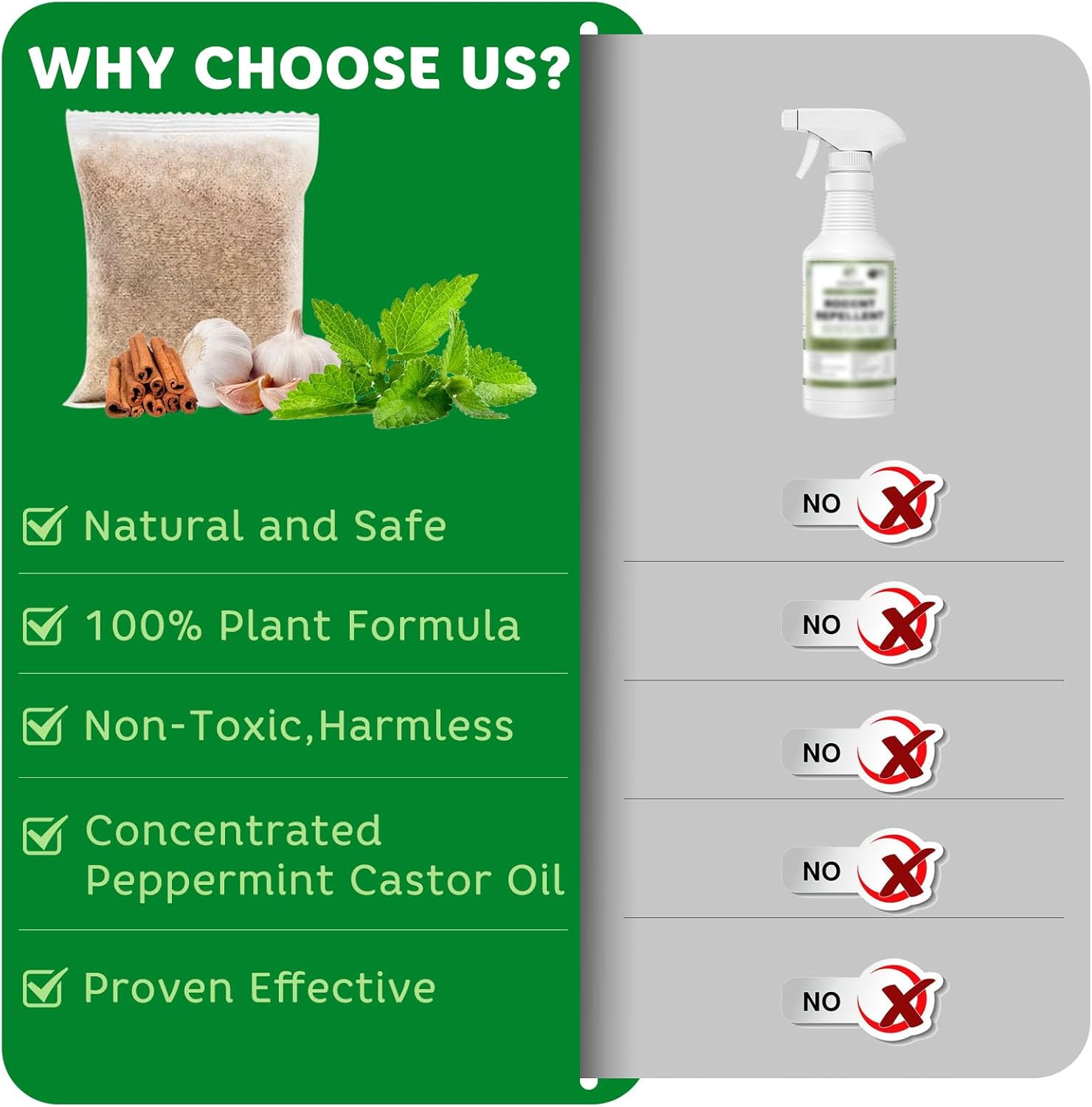 - 【Humane Natural Rodent Repellent】Repel rodents without causing harm, the rat repellent works by emitting multiple strong minty scents, the strong stimulation makes rodents feel uncomfortable and forces them to run away. It is an ideal to replace mousetraps, single use sticky traps or pest repellent